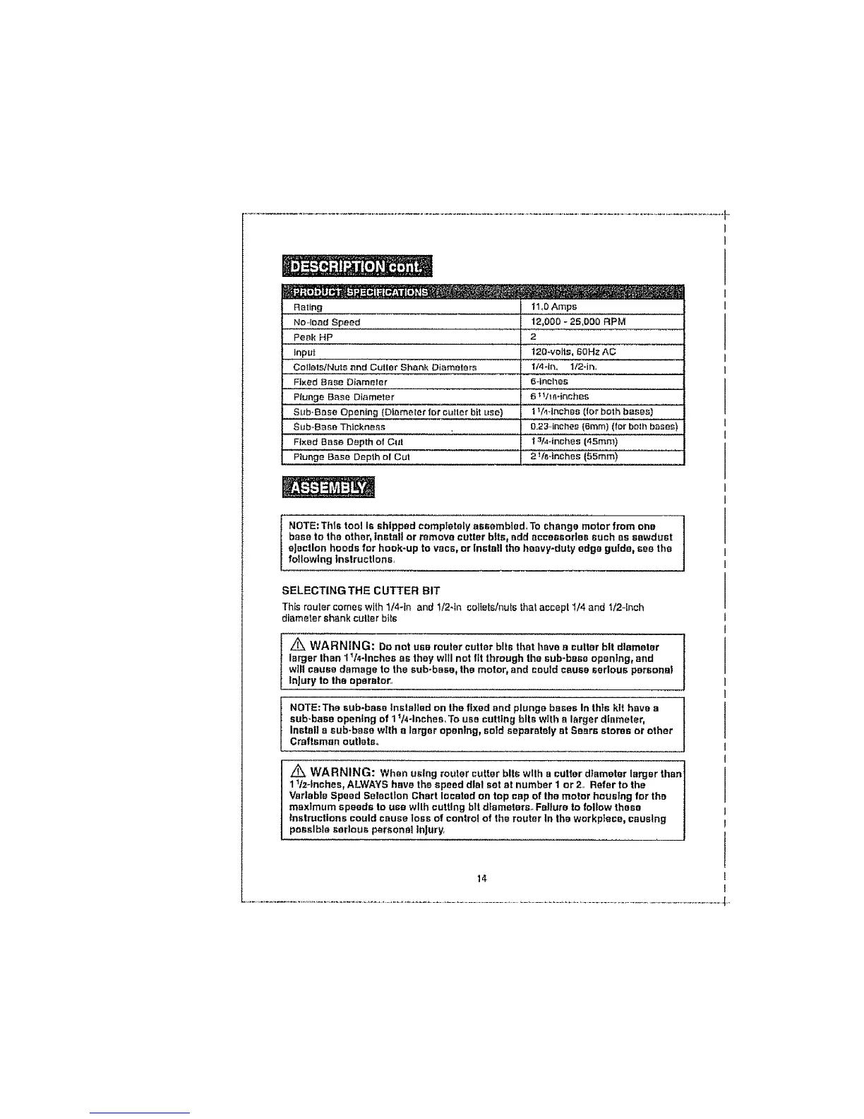 Z_ WARNING: When using router cutter bits with a cutter diameter larger than