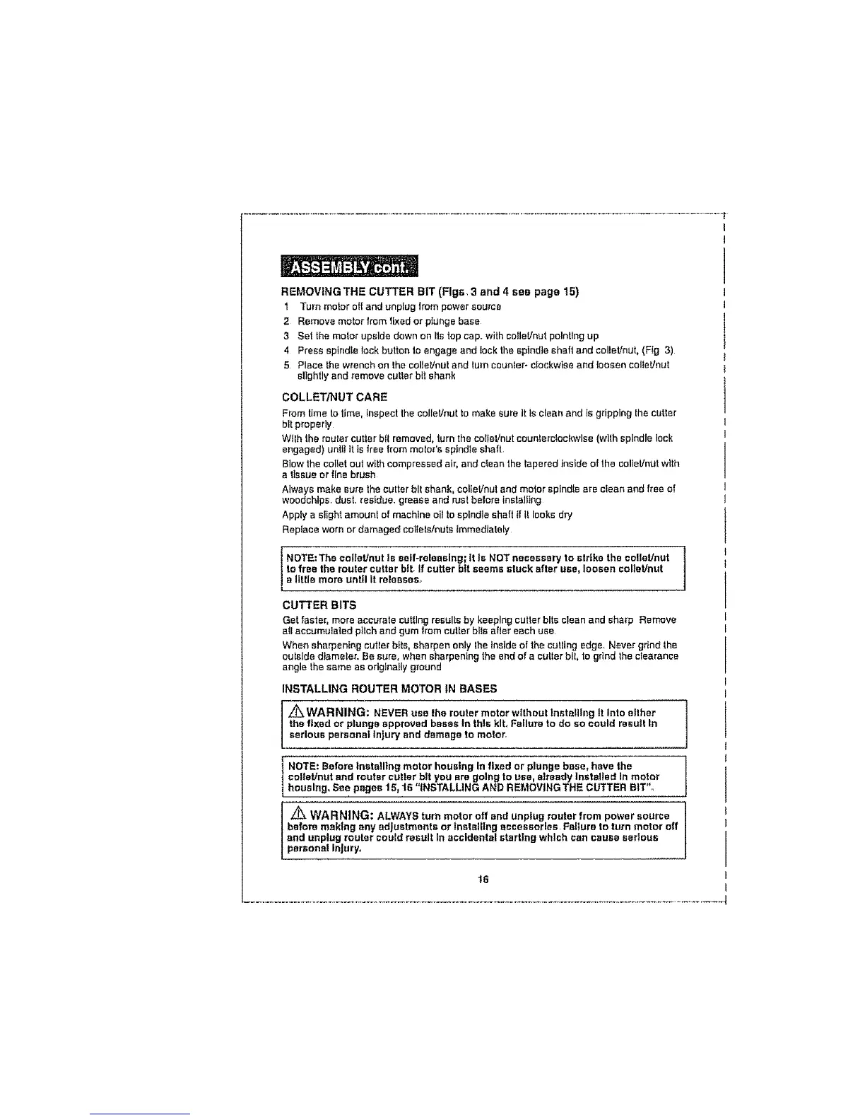 I Z_ WARNING: NEVER usa the router motor without installing tt Into either