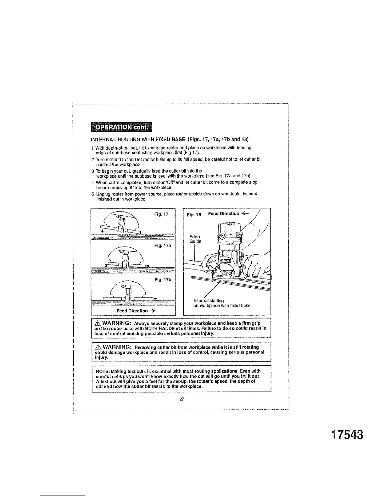NOTE: Making test cuts Is essential with most routing applications, Even with