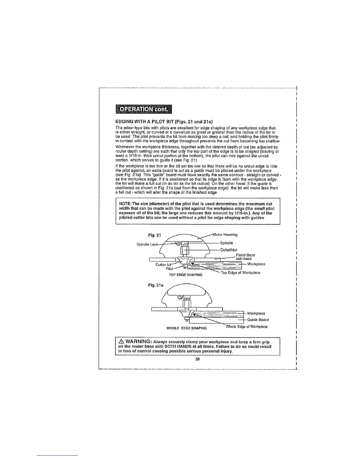 EDGING WITH A PILOT BIT (Figs. 21 and 21a)