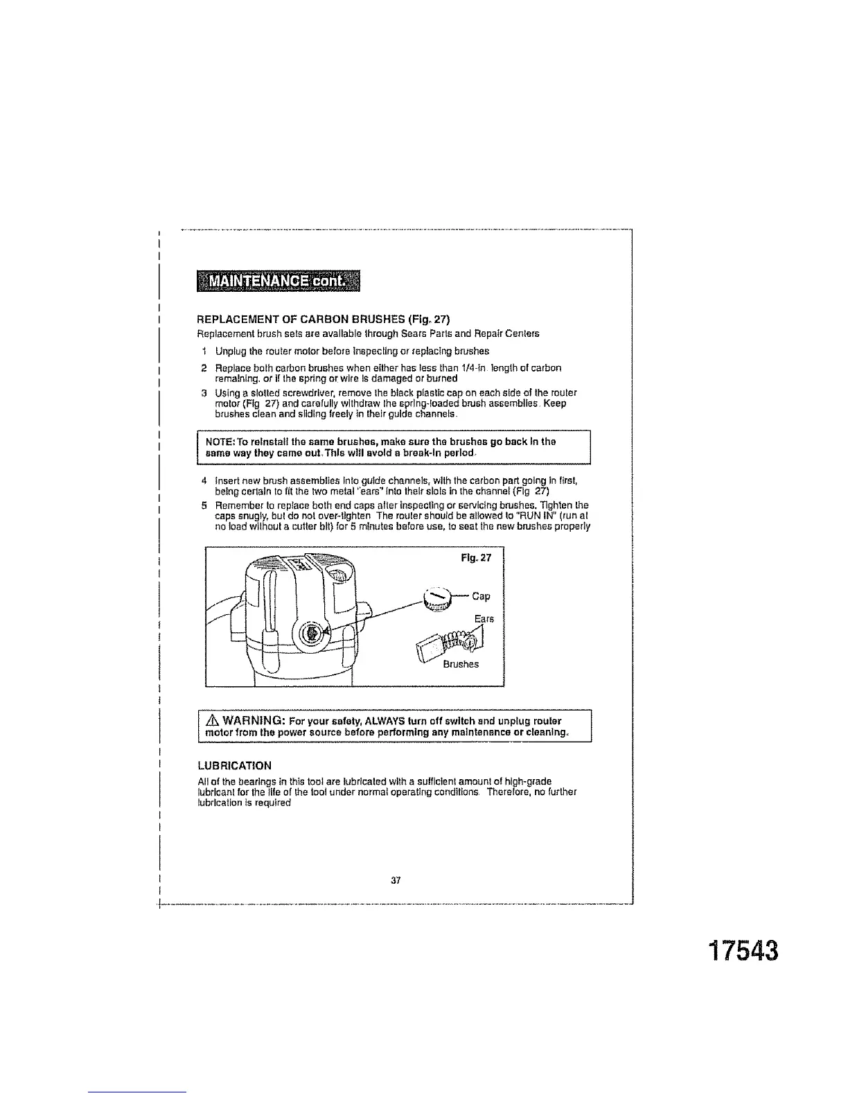 Z_ WARNING: For your safety, ALWAYS turn off switch end unplug routermotor from the power source before performing any maintenance or cleaning°