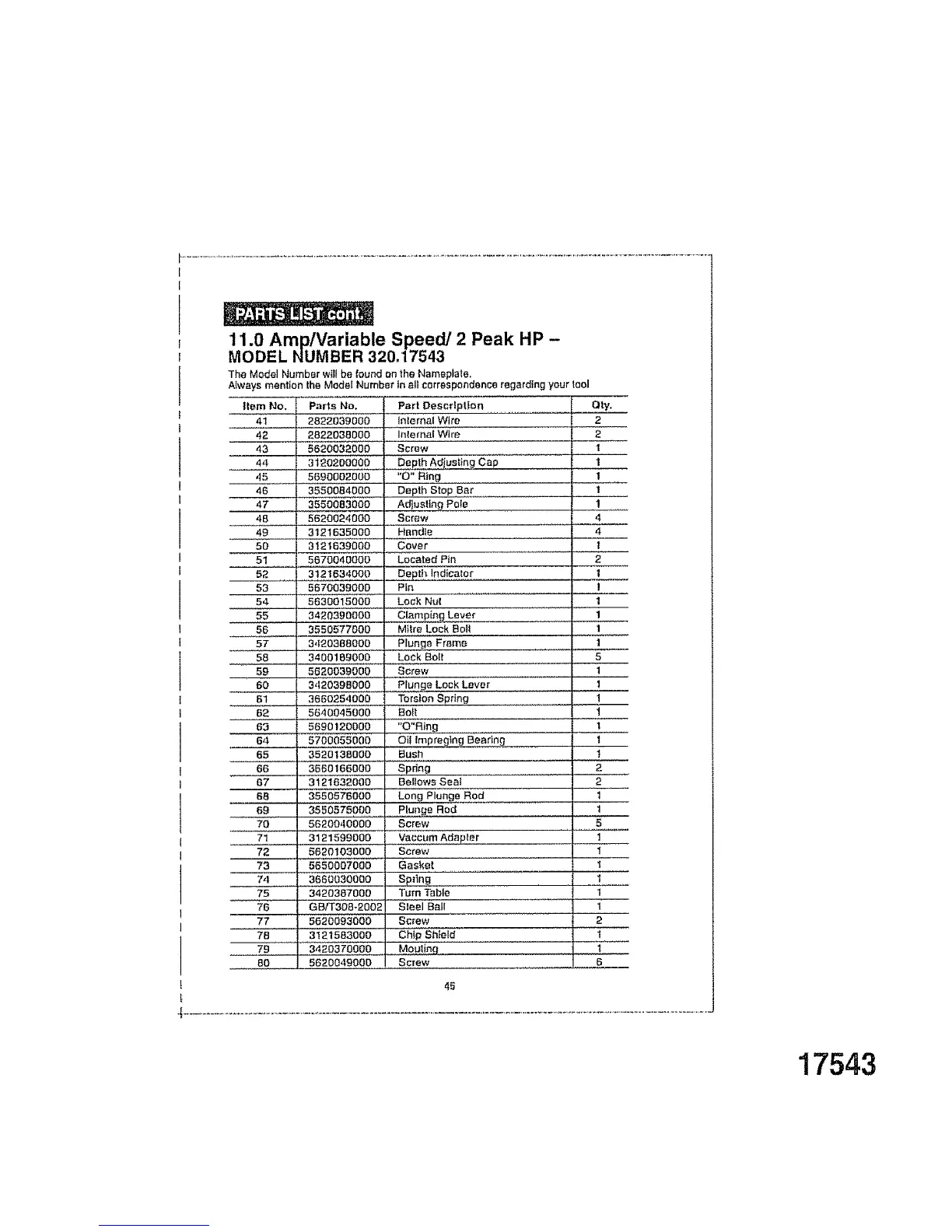 MODEL NUMBER 320.17543