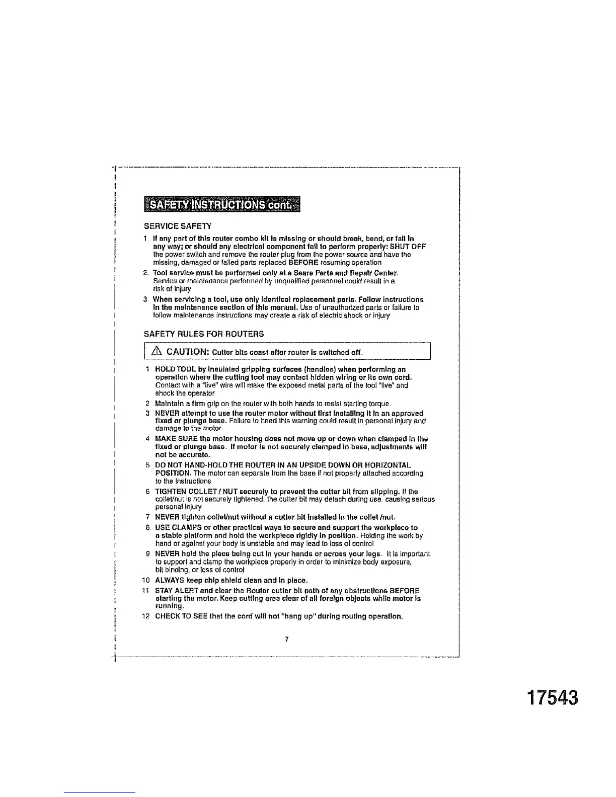 1 If any part of this router combo kit is mlsstng or shou|d break, bend, or fell in
