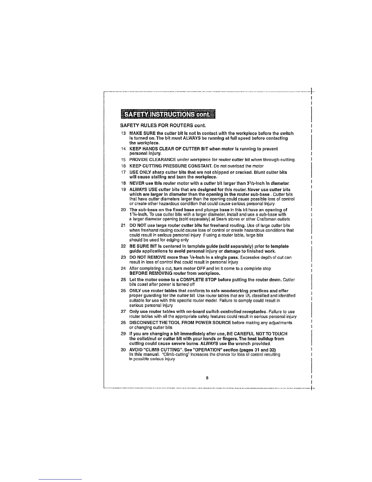 19 ALWAYS USE cutter bits that are designed for this router, Never usa cutter bits
