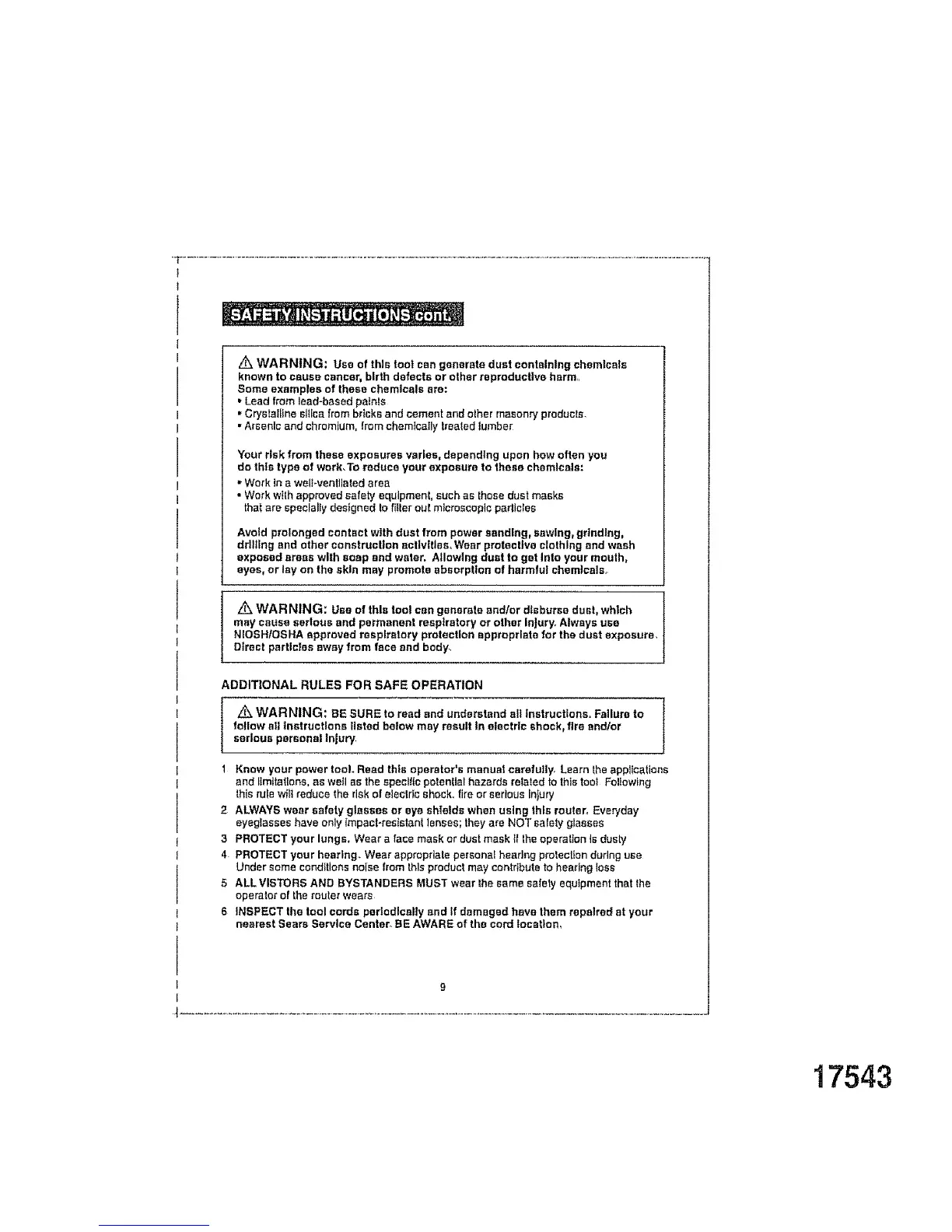 z_ WARNING: Use of this toot can generate dust containing chemicals
