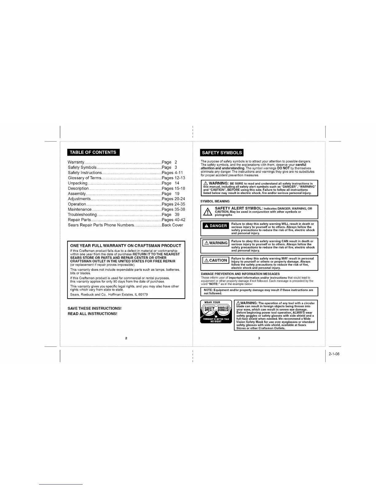 Safety Symbols ................................................. Page 3