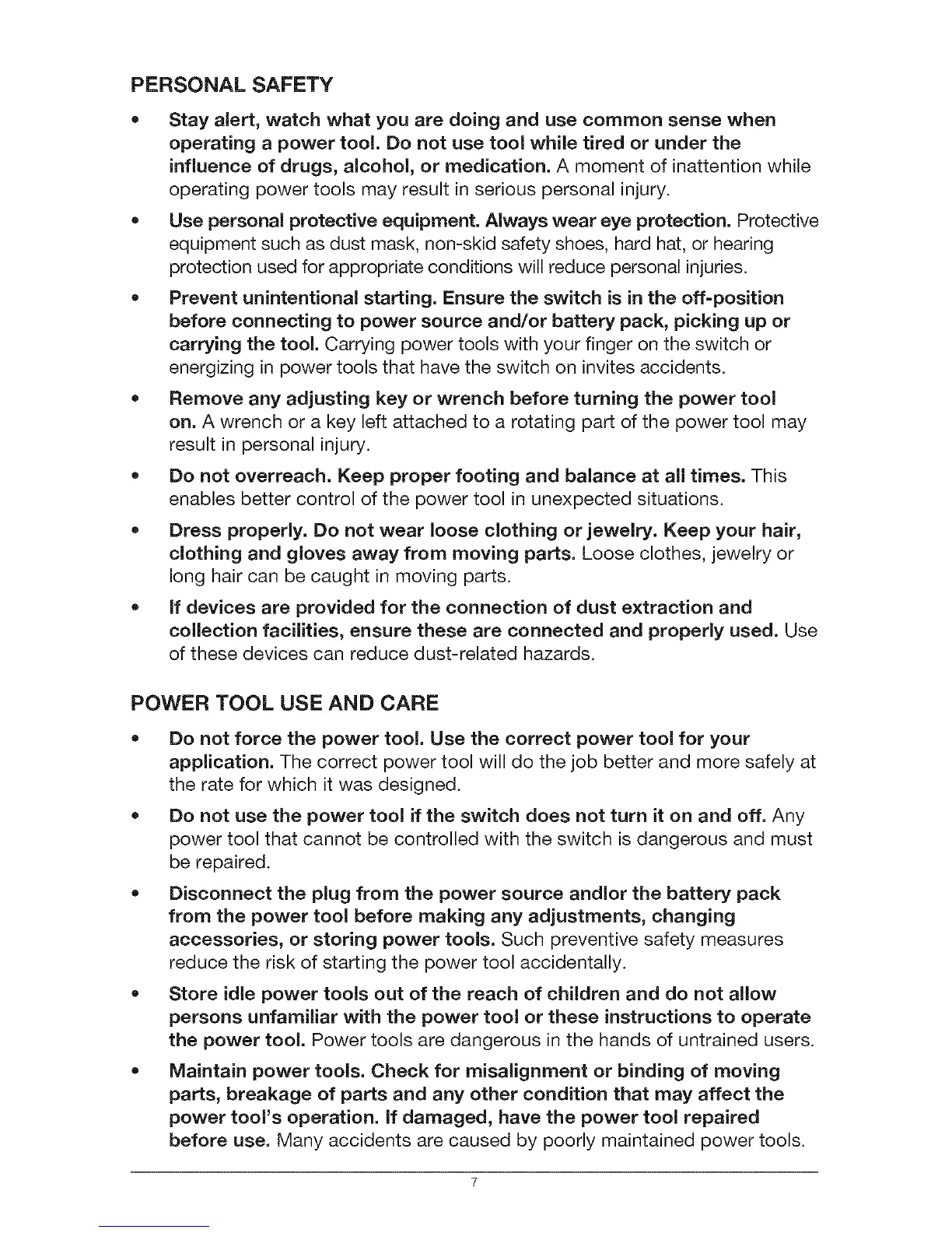 POWER TOOL USE AND CARE