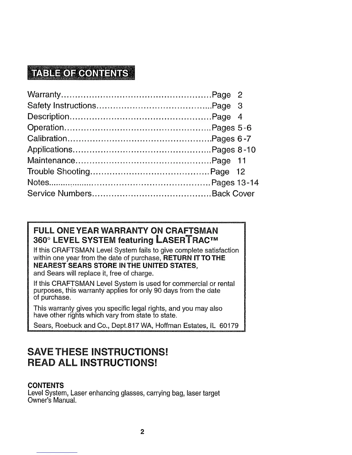 If this CRAFTSMAN Level System fails to give complete satisfaction