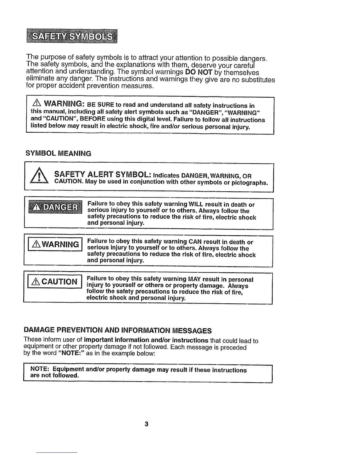 and "CAUTION", BEFORE using this digital level. Failure to follow all instructions