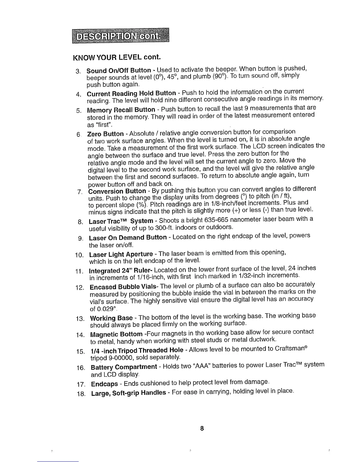 15. 1/4 -inch Tripod Threaded Hole - Allows level to be mounted to Craftsman e