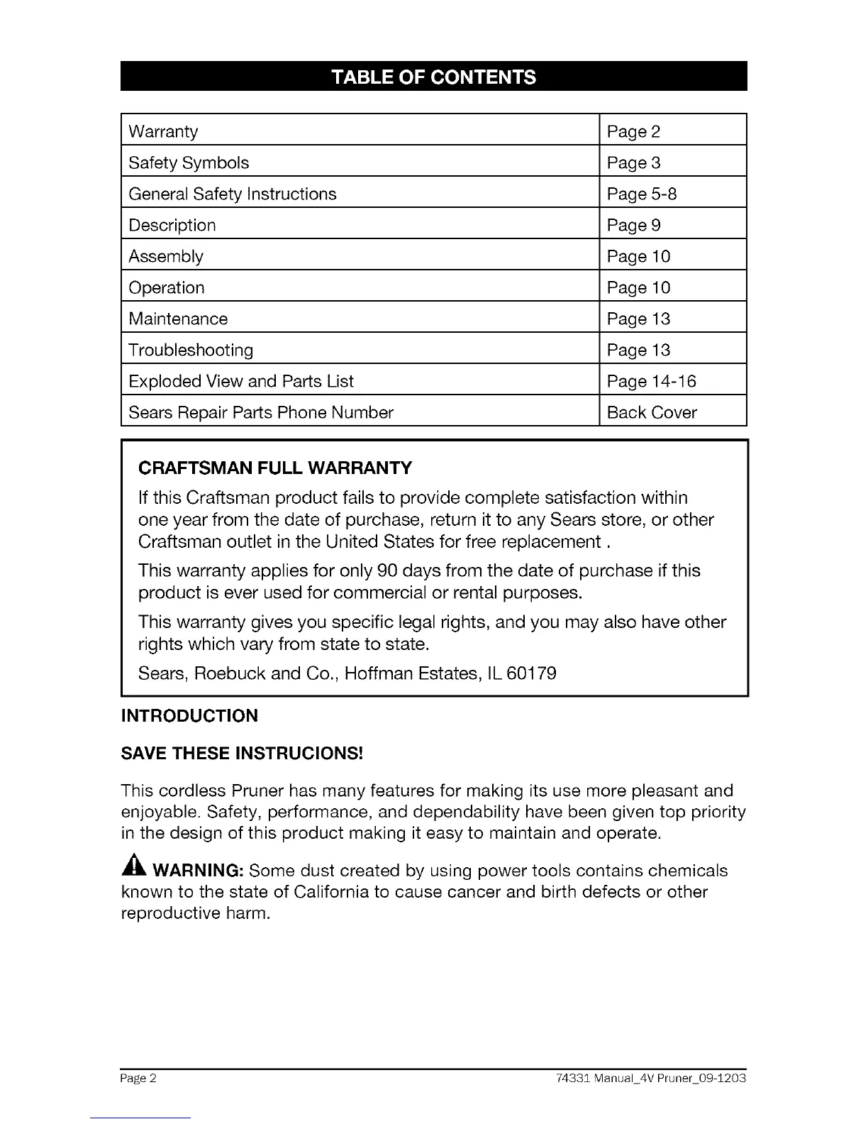 Page 2 74331 Manual_4V Pruner_09 1203