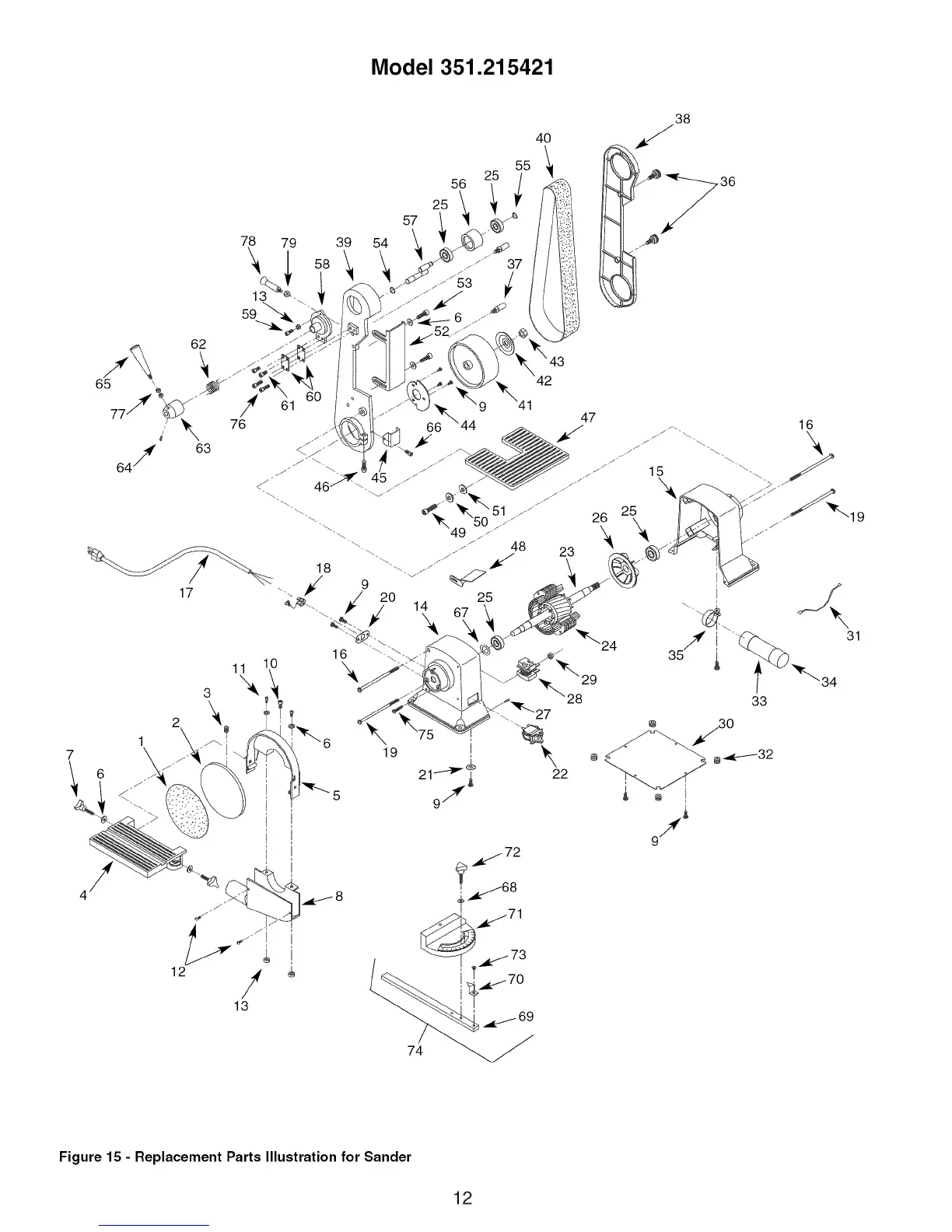 Figure 15 - Replacement Parts Illustration for Sander