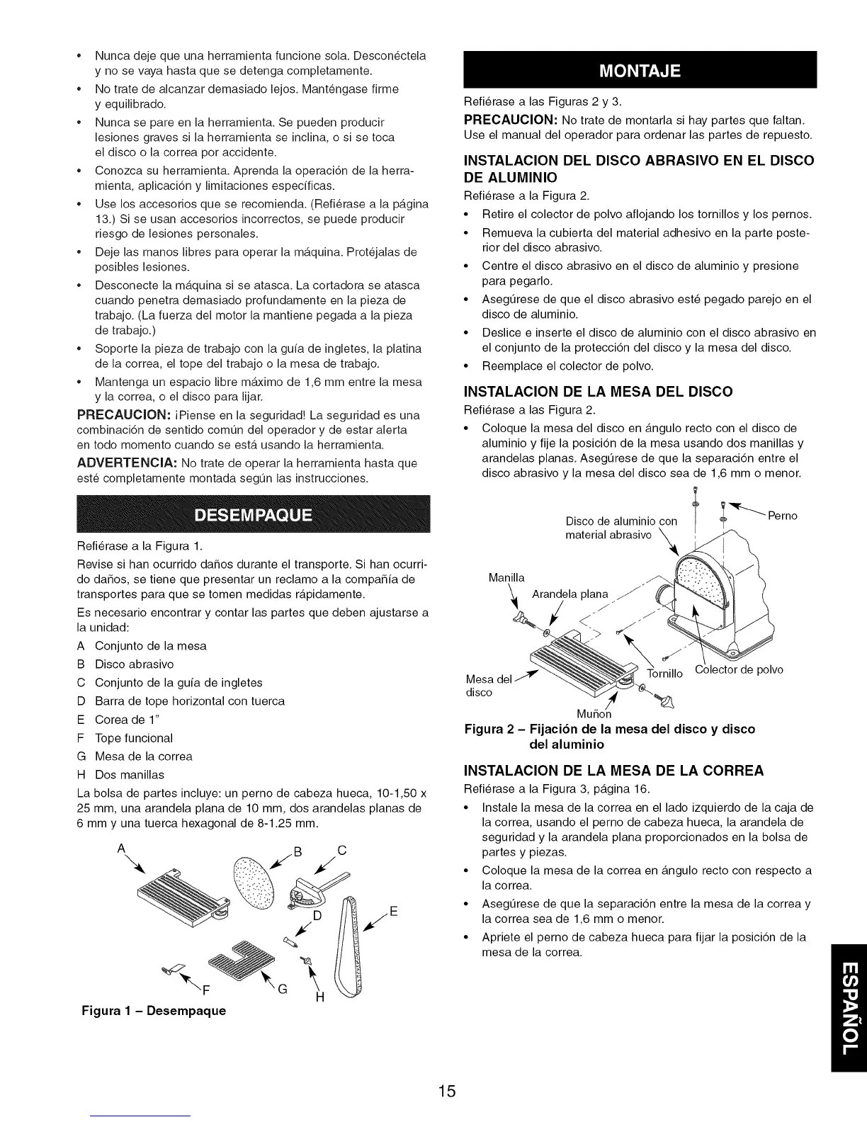 • Coloque la mesa del disco en _.ngulo recto con el disco de