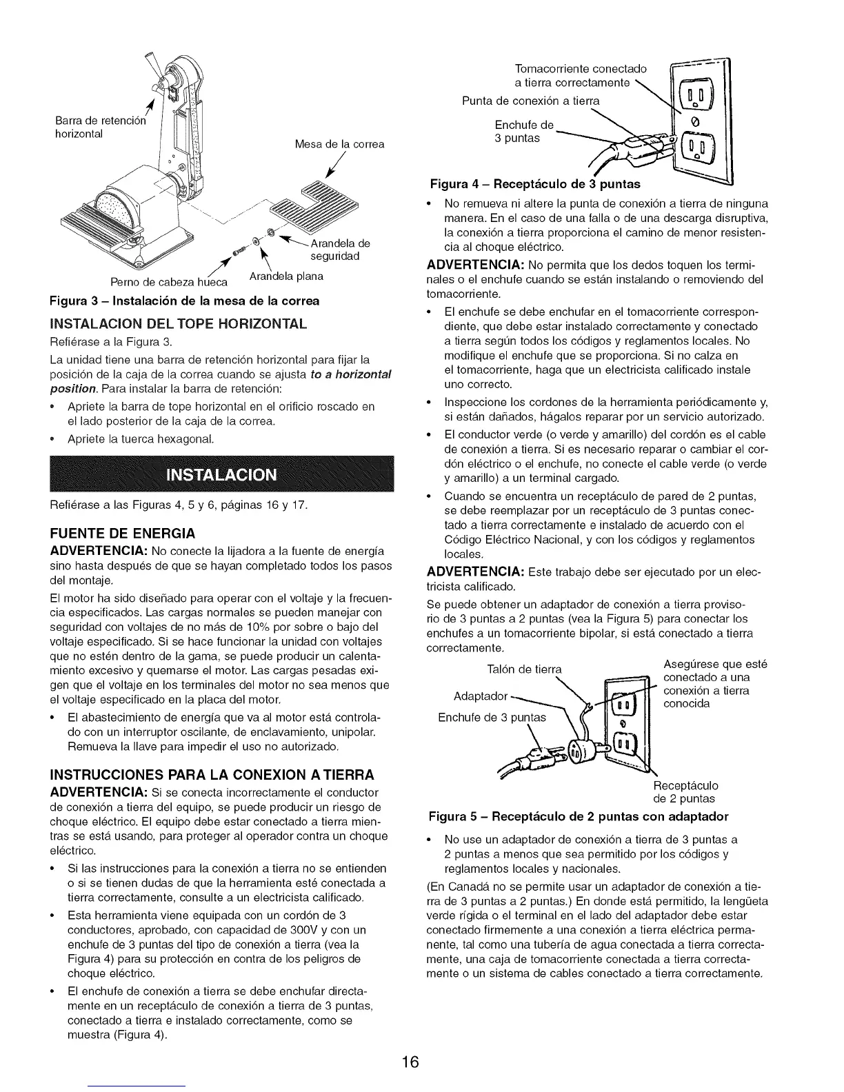 ADVERTENCIA: No conecte la lijadora a la fuente de energfa