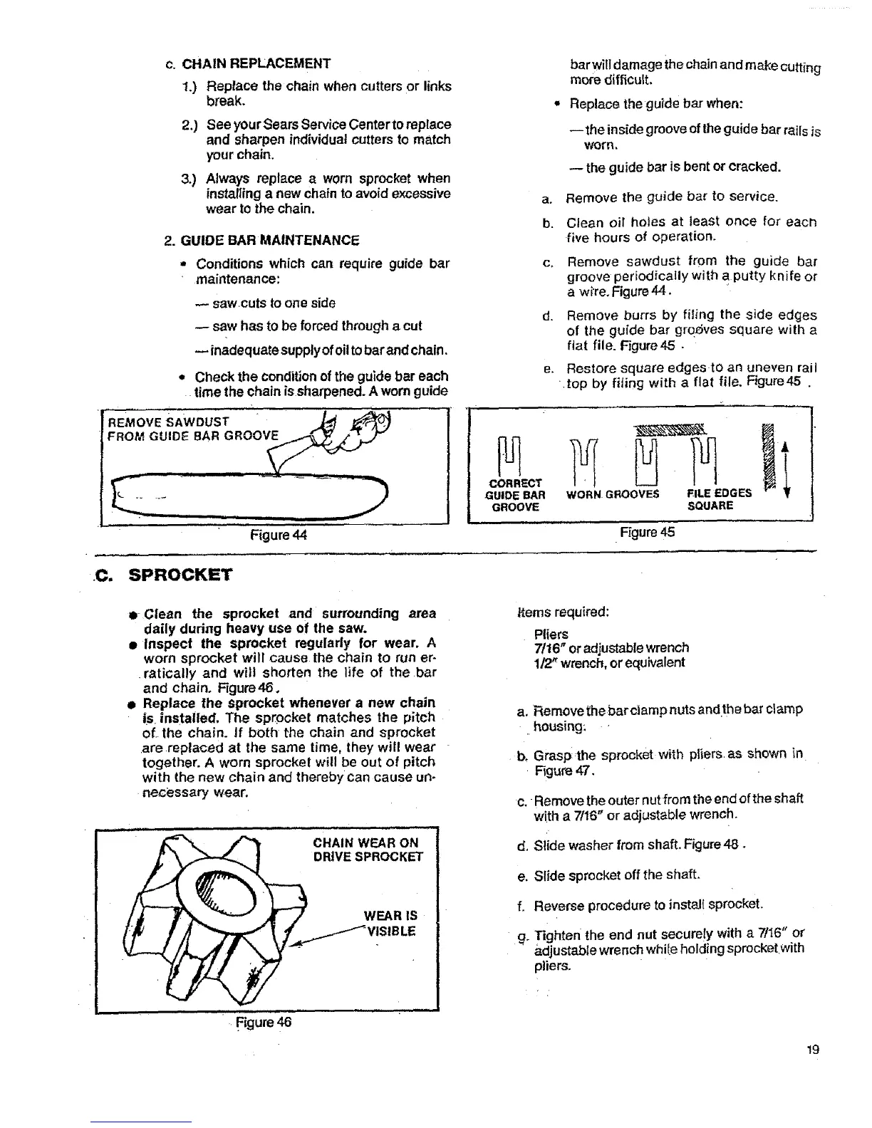 ,, Check the condition ofthe guide bar each