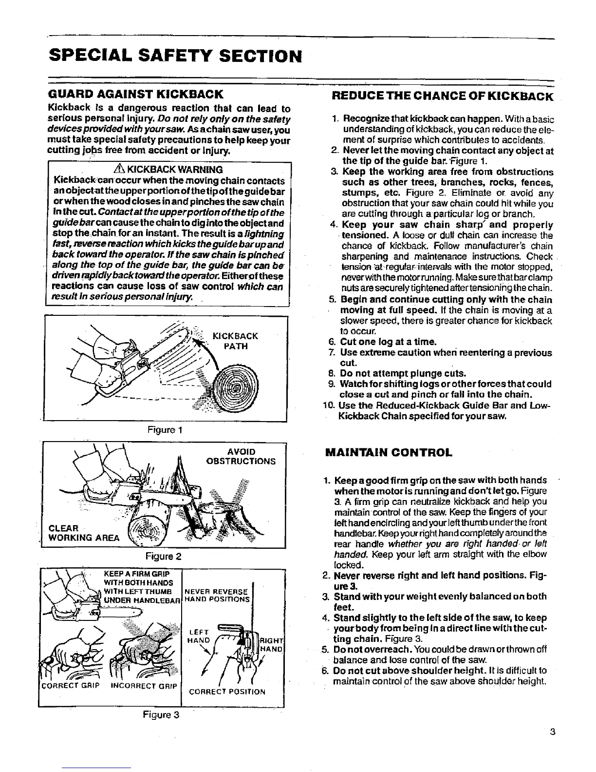 chance of kickback. Follow manufacturer's chain