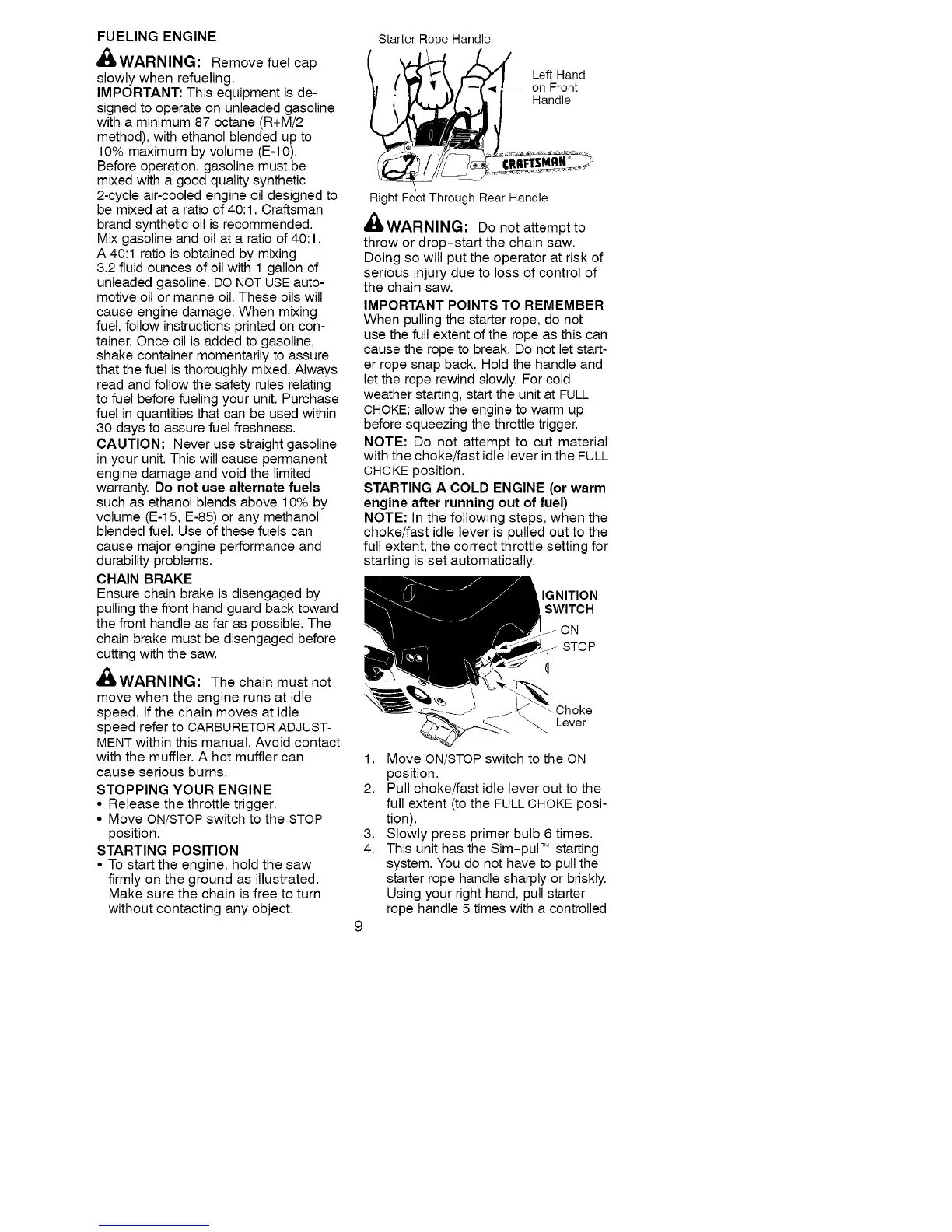 throw or drop-start the chain saw.