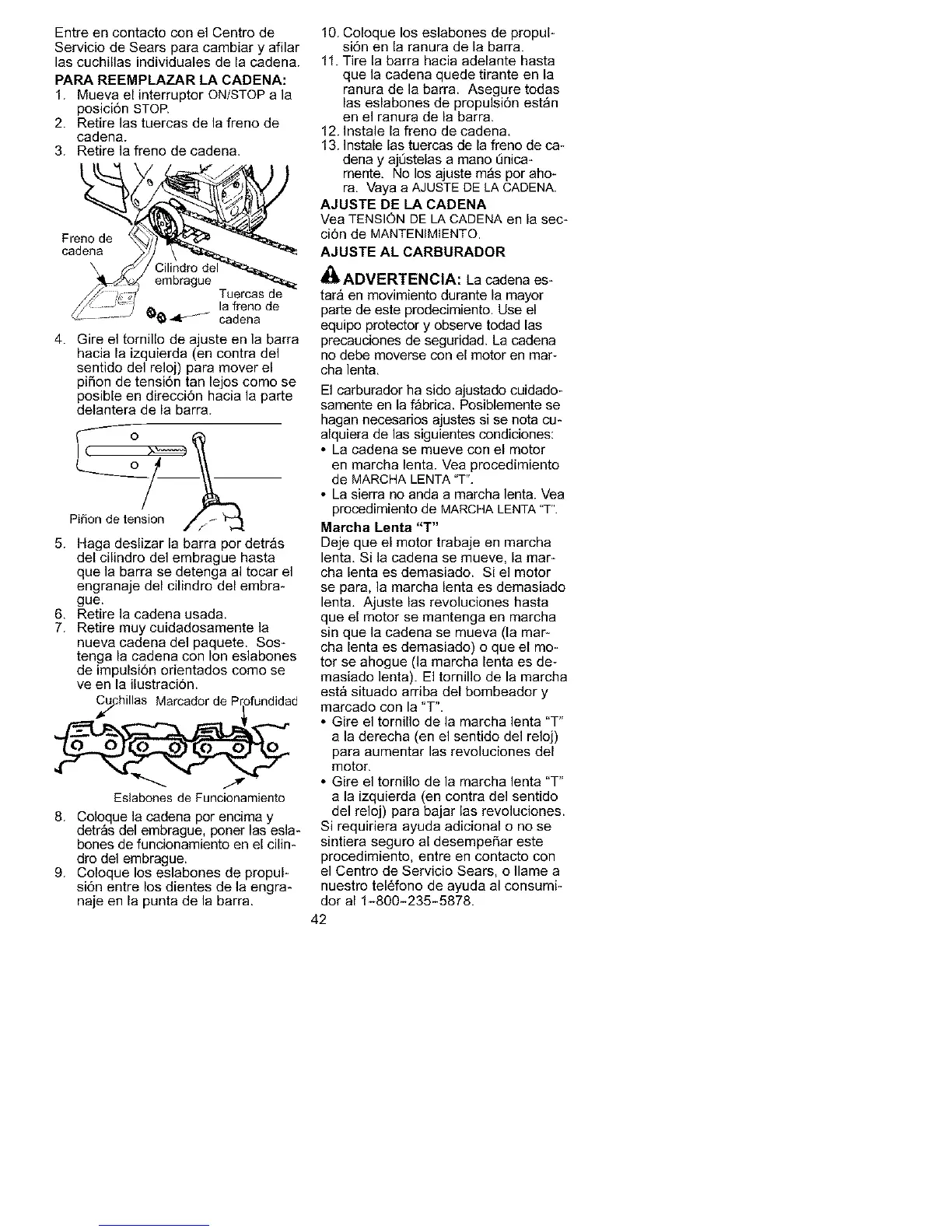 • La sierra no anda a marcha lent& Vea