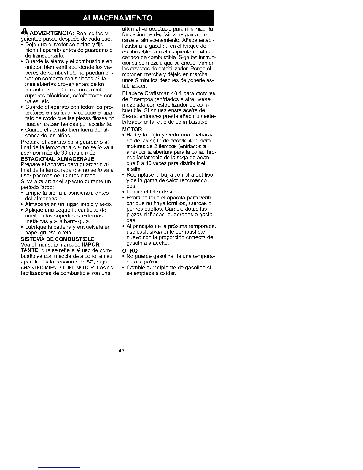 El aceite Craftsman 40:1 para motores