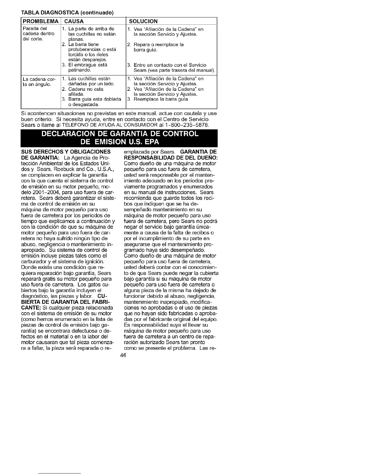 Sears (yea parte trasera del manual).