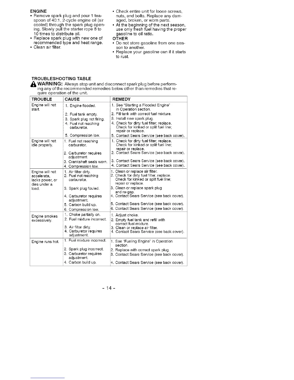 i4. Contact Sears Service (see back cover)