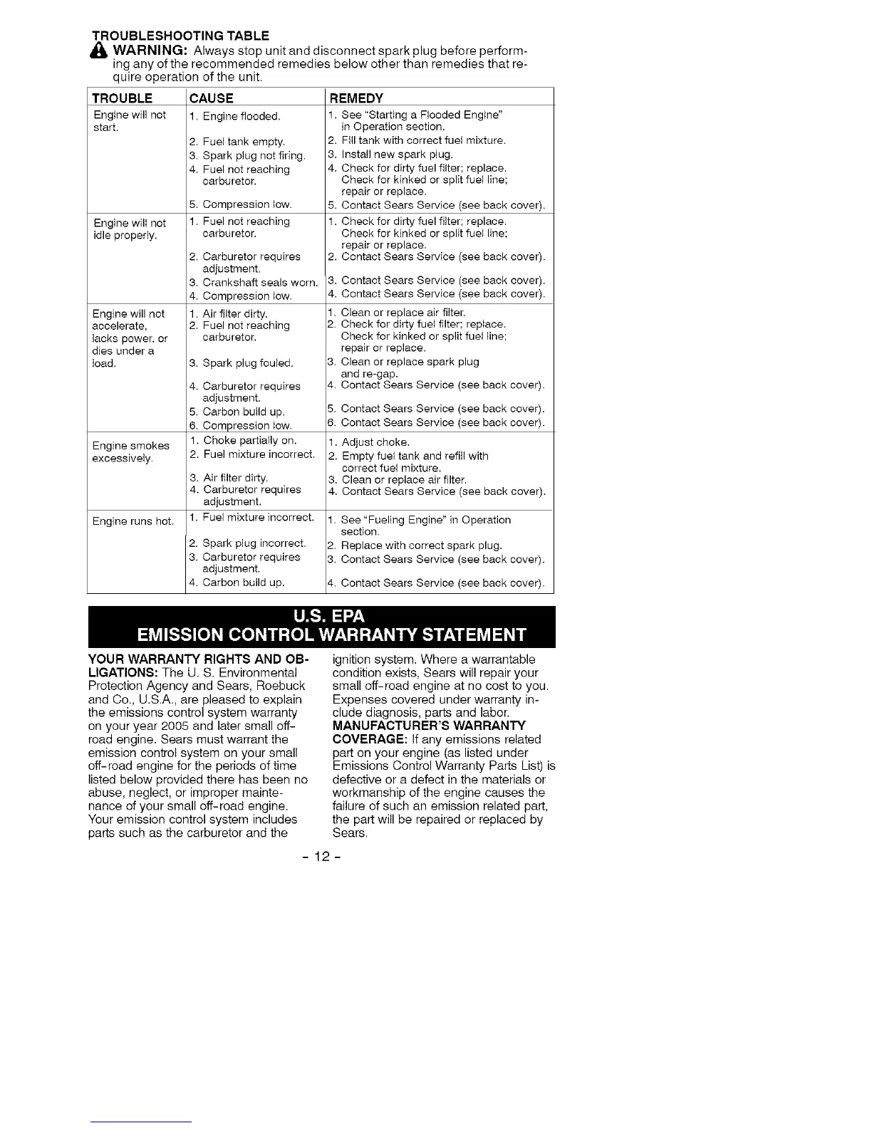 ,_ WARNING: Always stop unit and disconnect spark plug before perform-