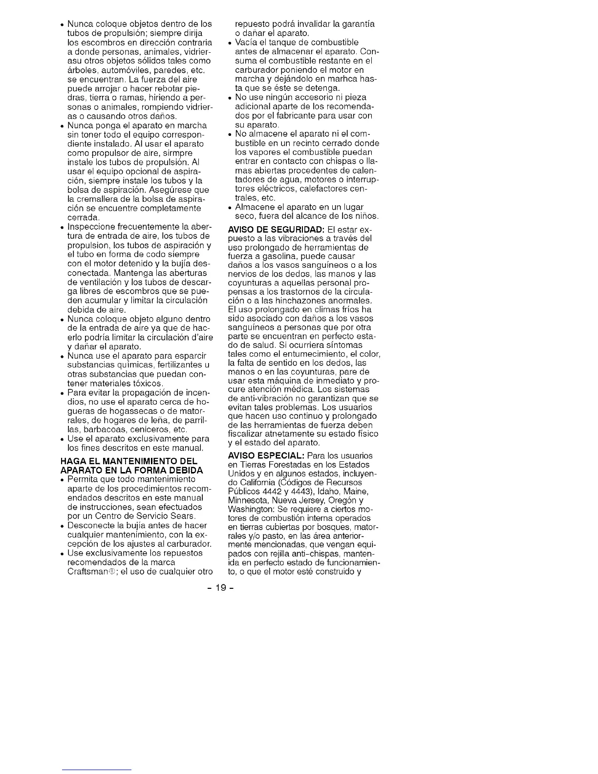 • Permita que todo mantenimiento