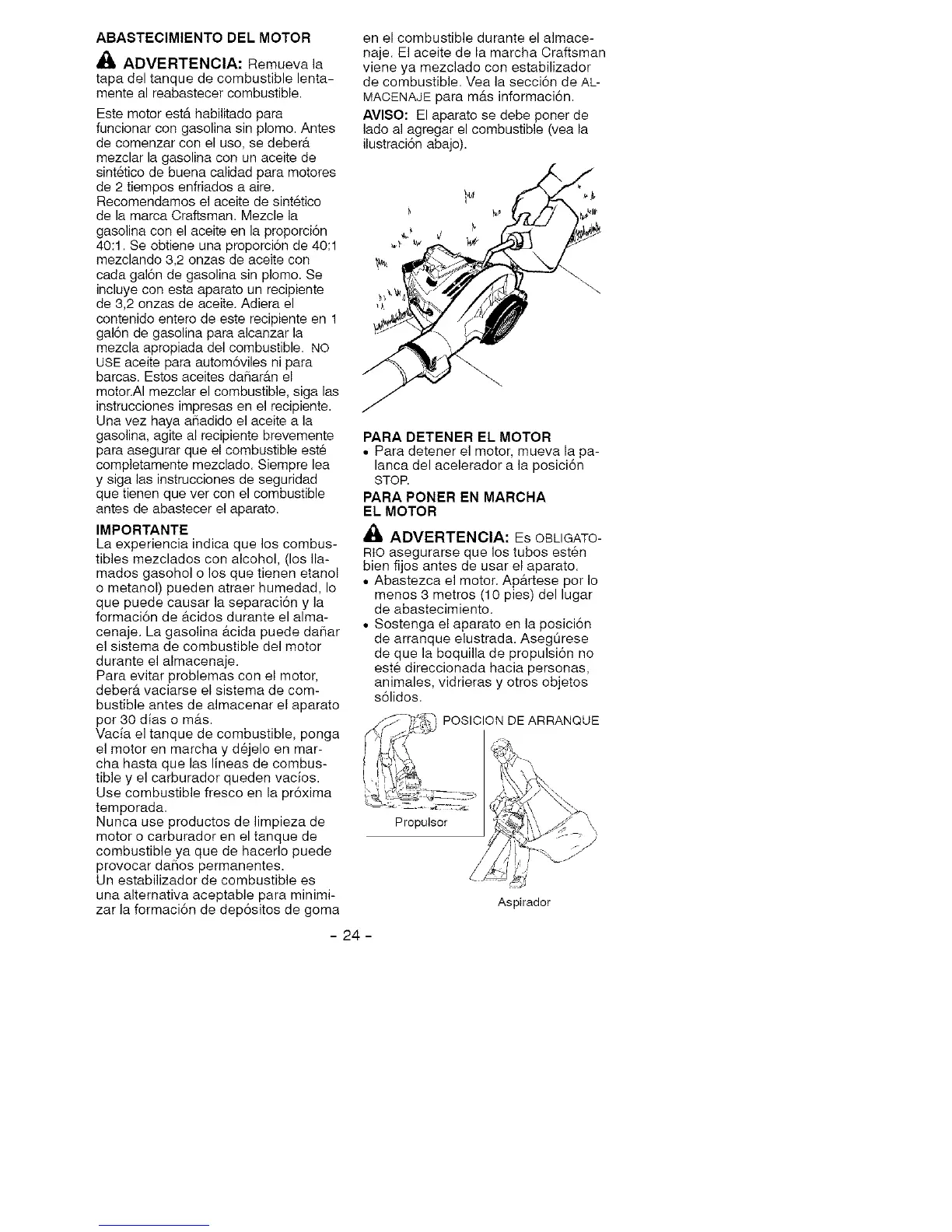 • Abastezca el motor. Ap&rtese por Io