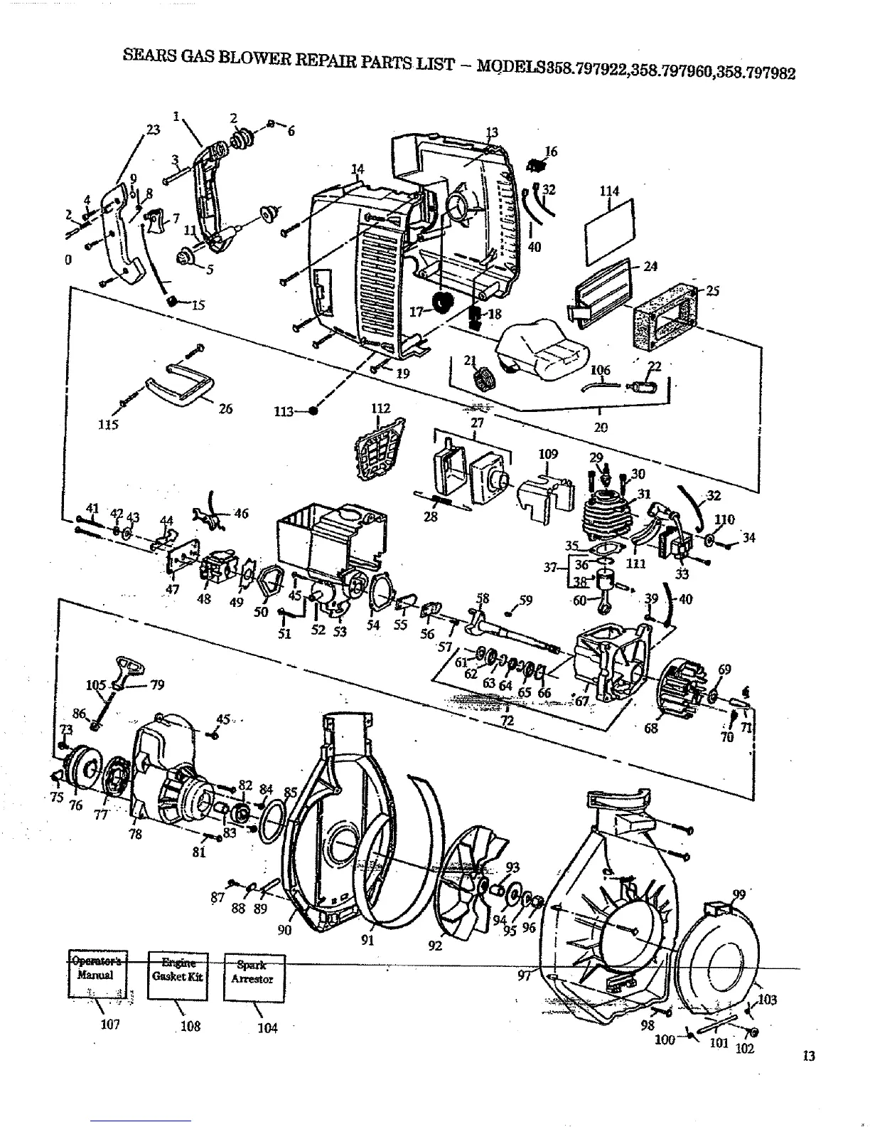 SEARS GAS BLOWER REPAIR PARTS LIST - MODELS358.797922,358.797960,358.797982
