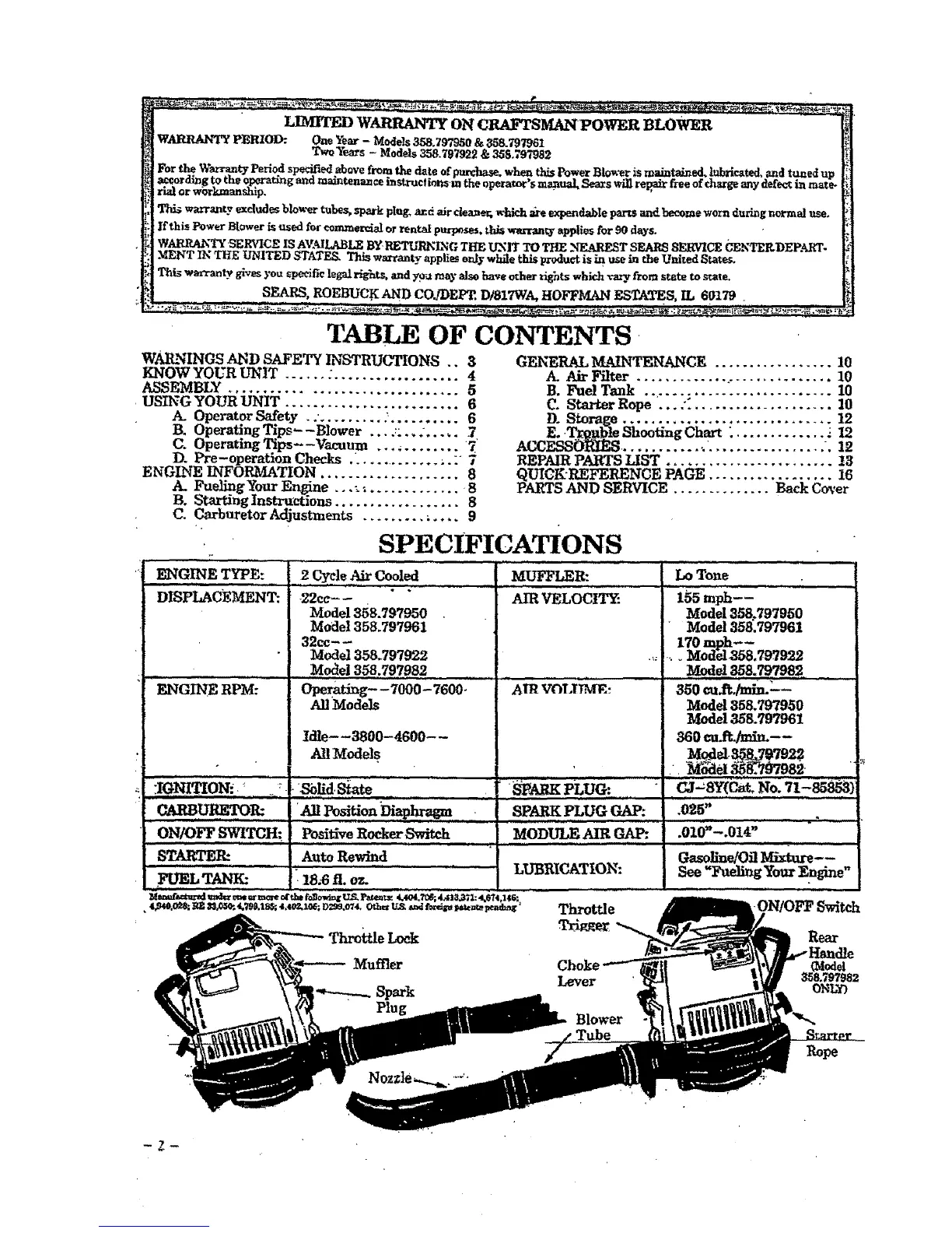 _,| _ warranty excludes blower t_e_, spark plug, a_d air deane_; _ich _xe expendable parts and become worn dufingnvrmai use.