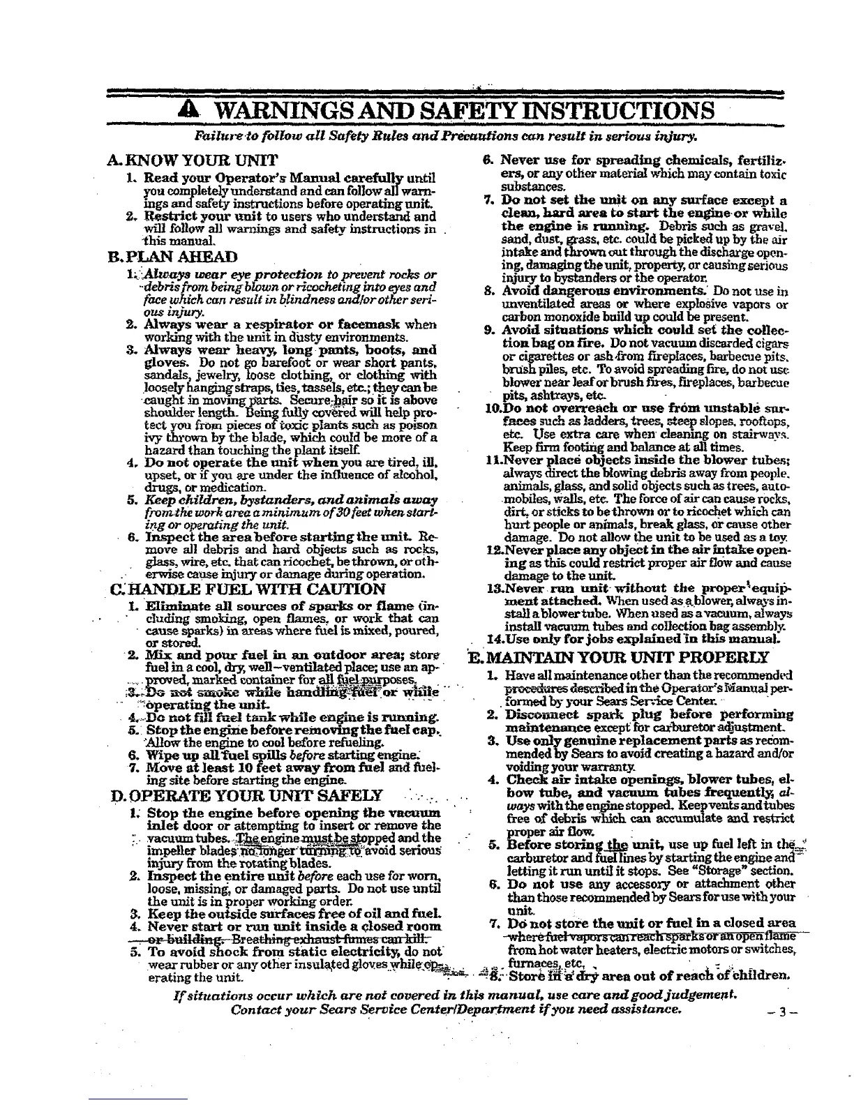 Contact your Sears Service Center/DepOt if you need assistance, _ 3 -