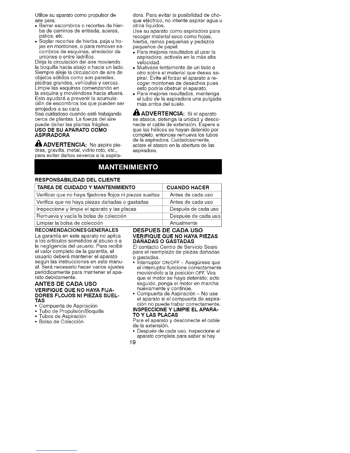 TAREA DE CUIDADO Y MANTENIMIENTO