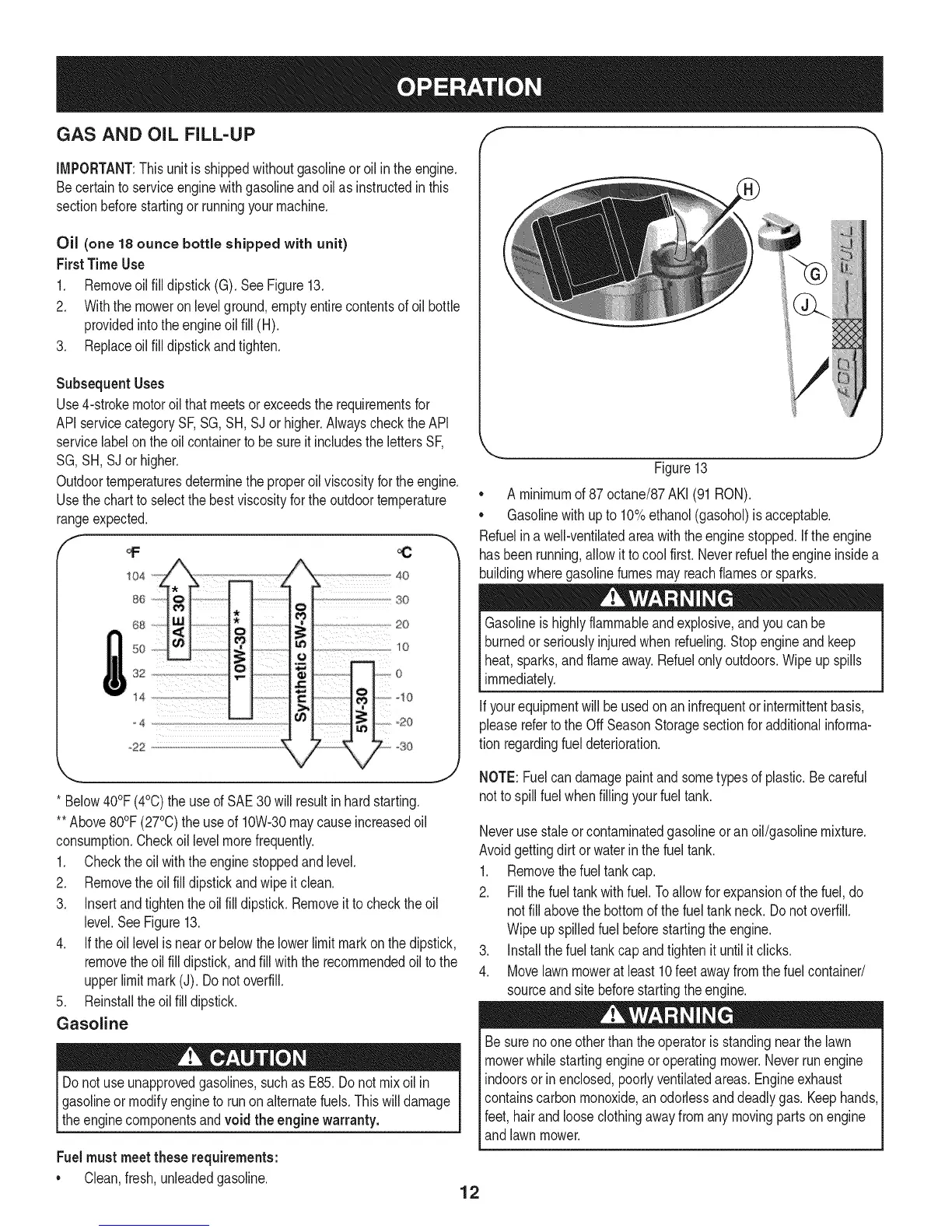 **Above80°F(27°C)theuse of 10W-30maycauseincreasedoil