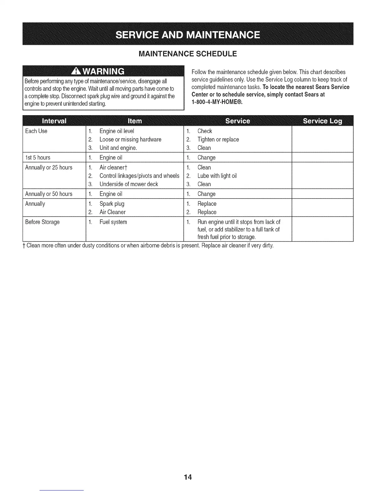 completedmaintenancetasks.To locate the nearest Sears Service