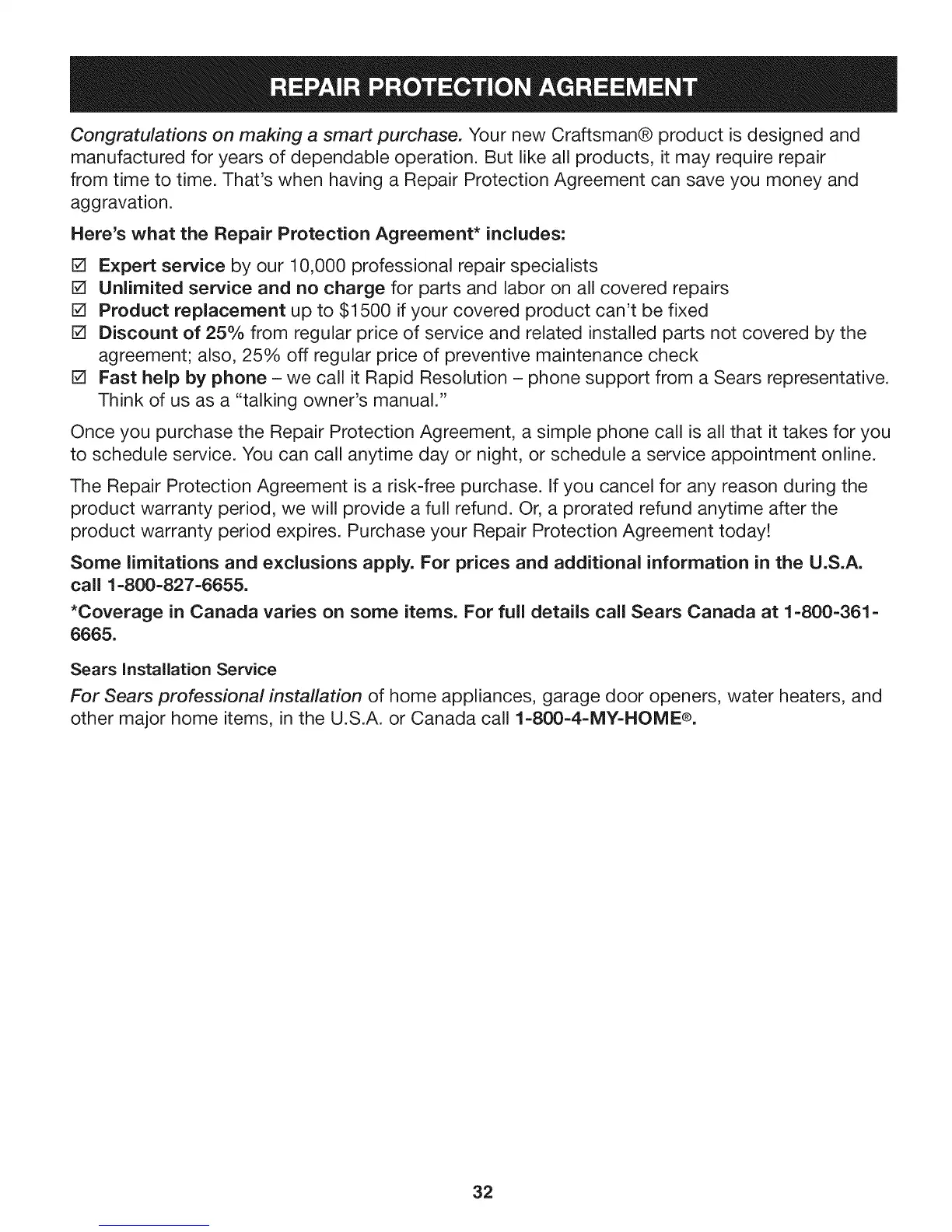*Coverage in Canada varies on some items. For full details call Sears Canada at 1=800=361=