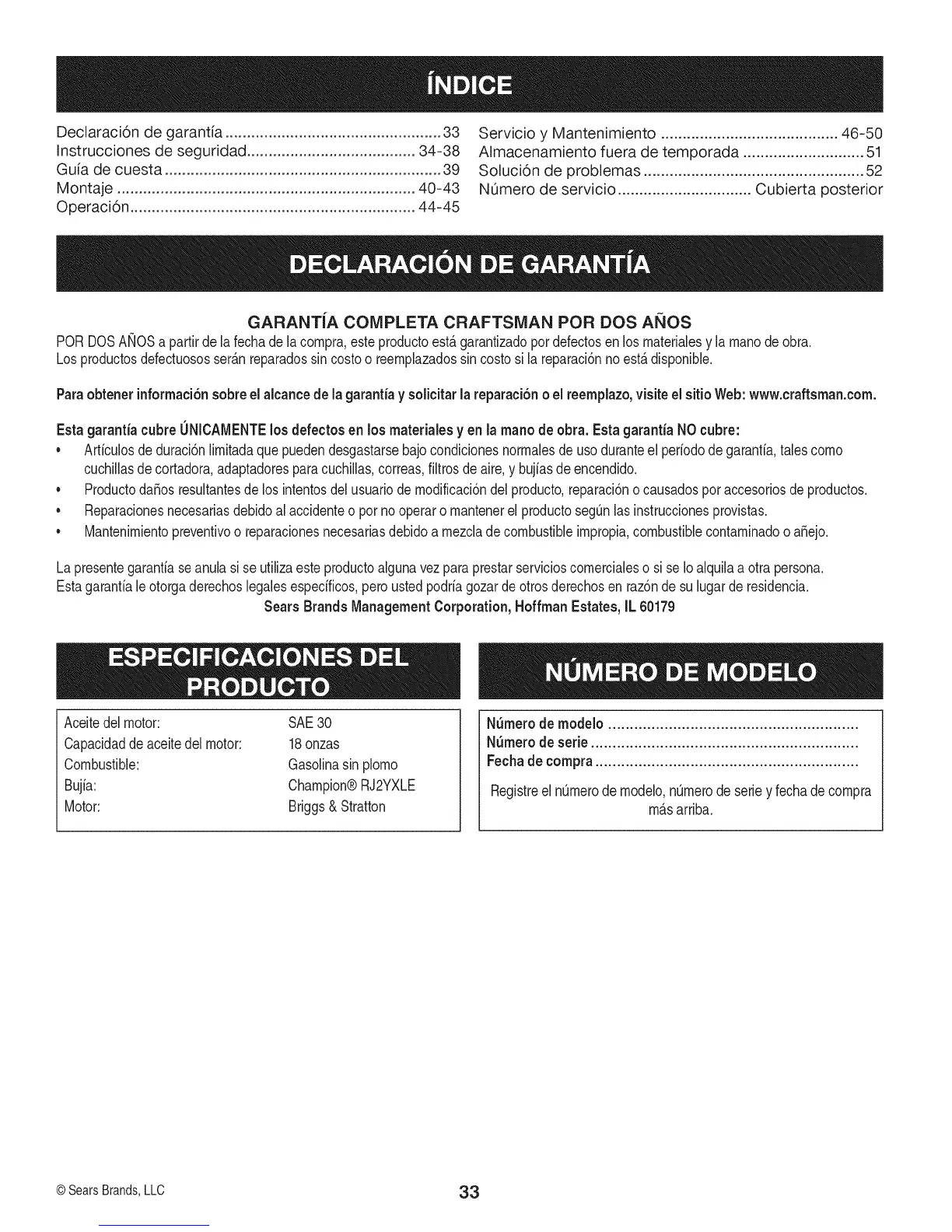GARANTiA COMPLETA CRAFTSMAN POR DOS ANOS