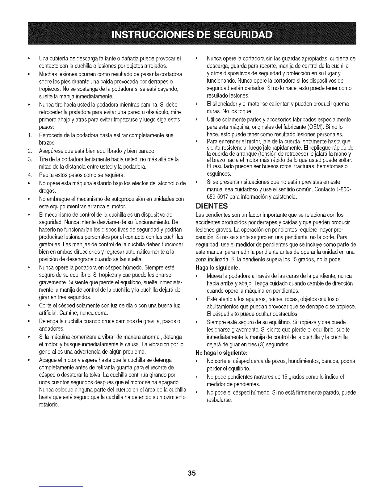 • Muevala podadoraa travesde lascarasde la pendiente,nunca