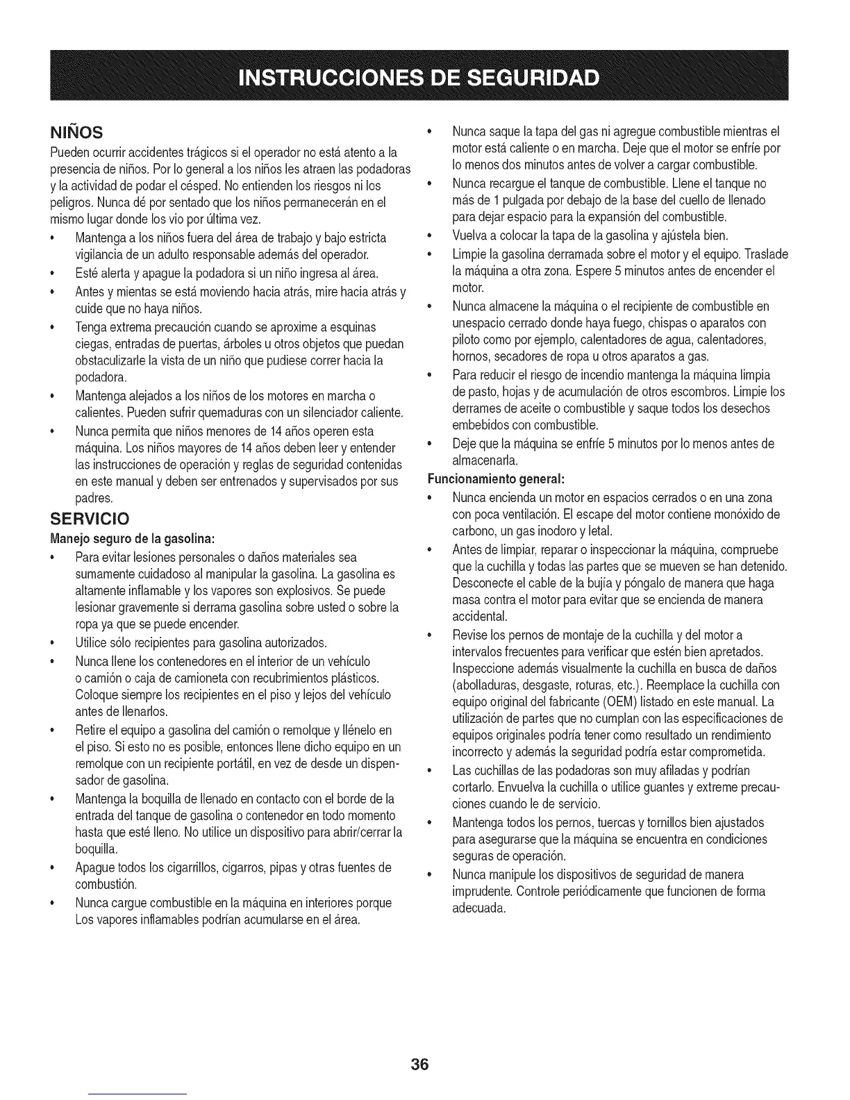 • Nuncarecargueel tanquedecombustible.Lleneel tanqueno