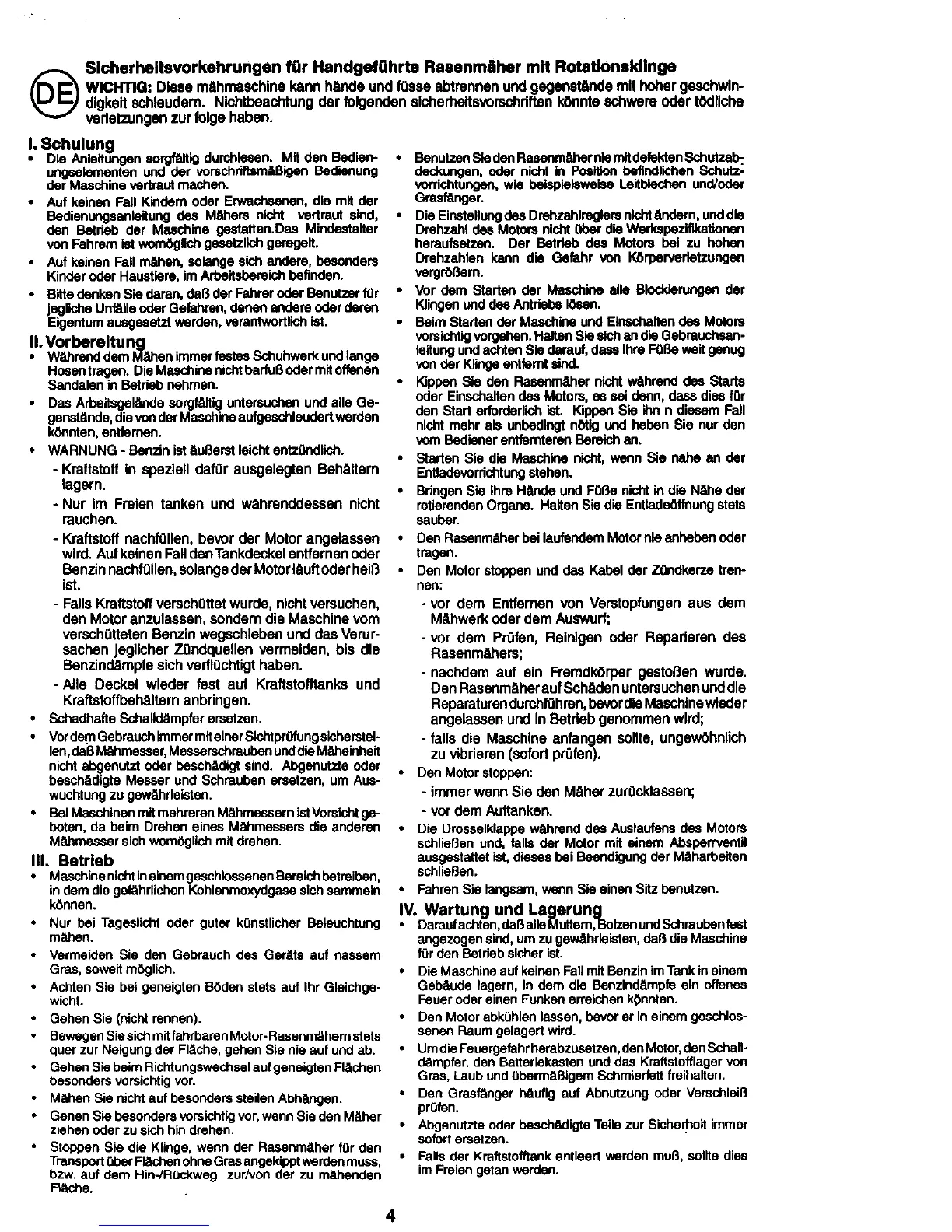 (_ Slcherh.eltsvorkehrungen fQr HandgefQhrte Rasenmilher mlt Rotatlonsldlnge