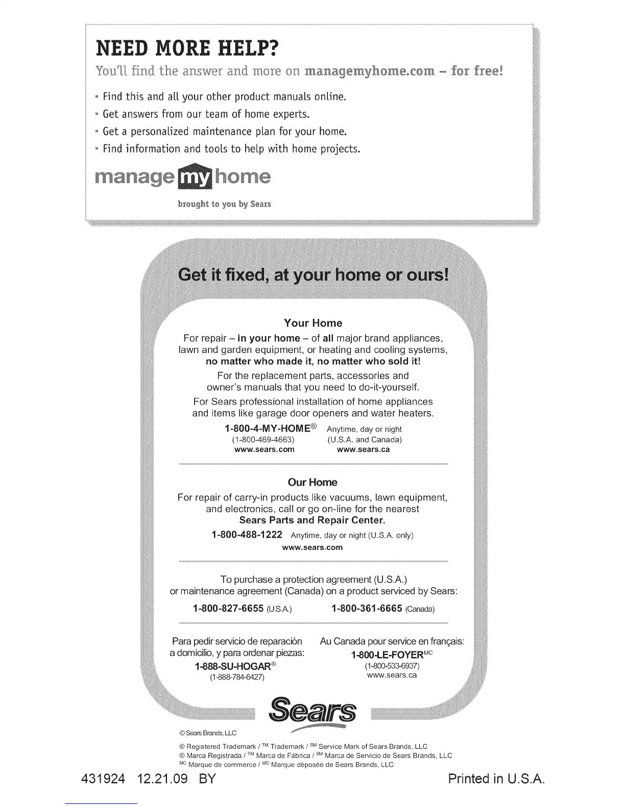 ® Registered Trademark / TMTrademark / SMService Mark of Sears Brands, LLC