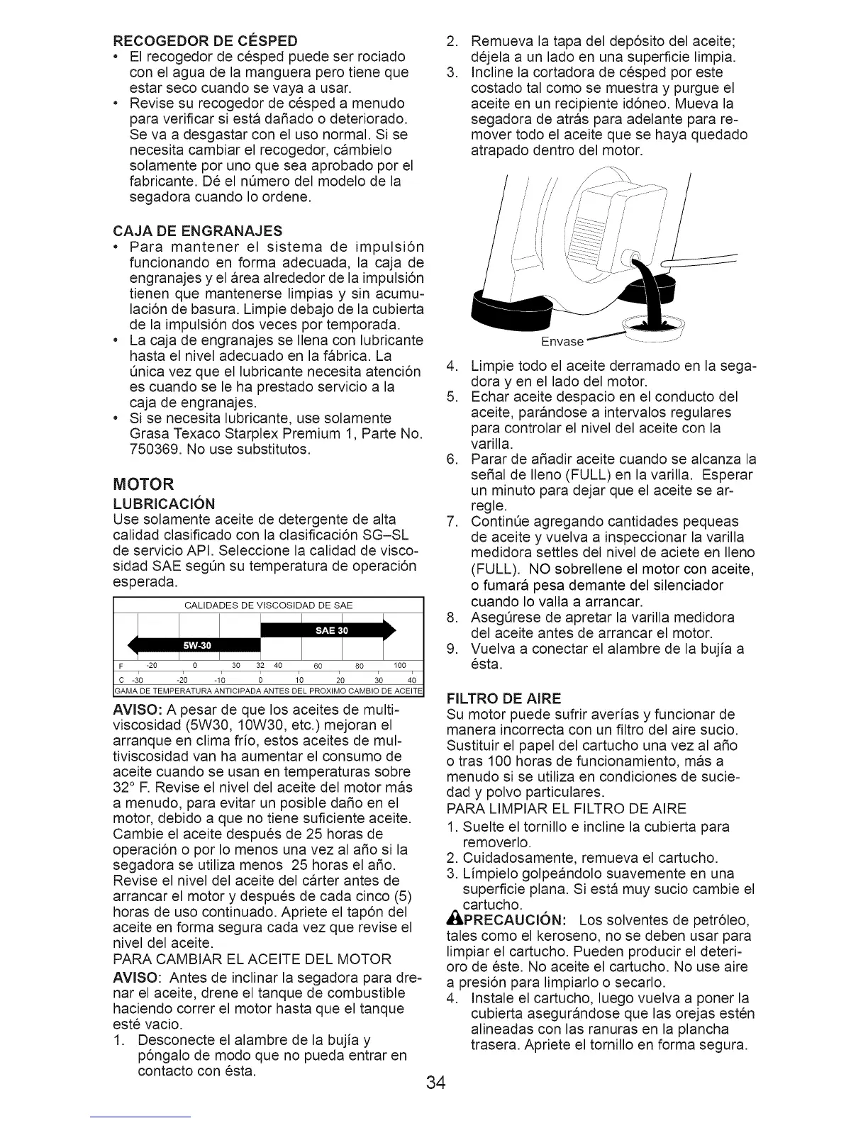 32 ° F. Revise el nivel del aceite del motor mas