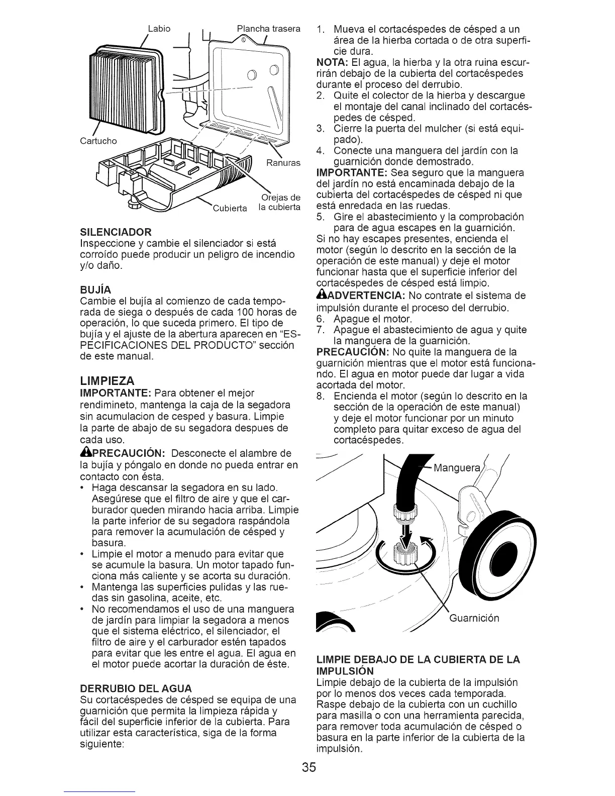 Limpie debajo de la cubierta de la impulsi6n