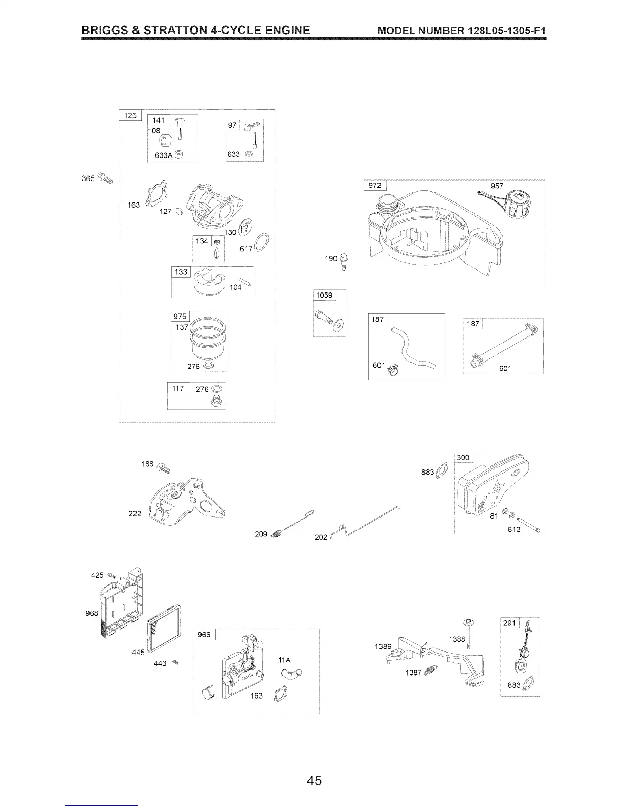 BRIGGS & STRATTON 4-CYCLE ENGINE MODEL NUMBER 128L05-1305-F1