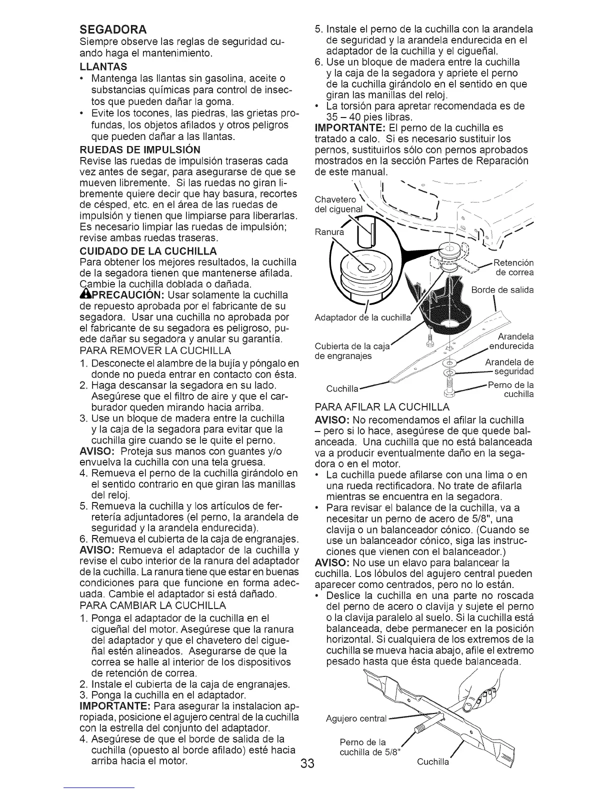 o la clavija paralelo al suelo. Si la cuchilla esta