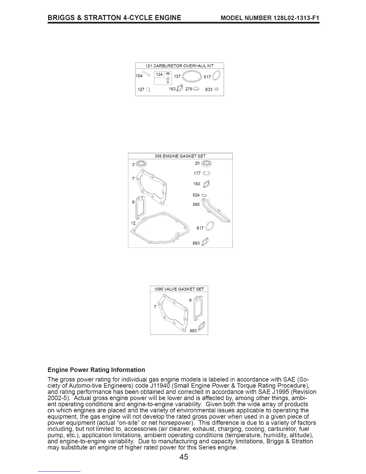 The gross power rating for individual gas engine models is labeled in accordance with SAE (So-