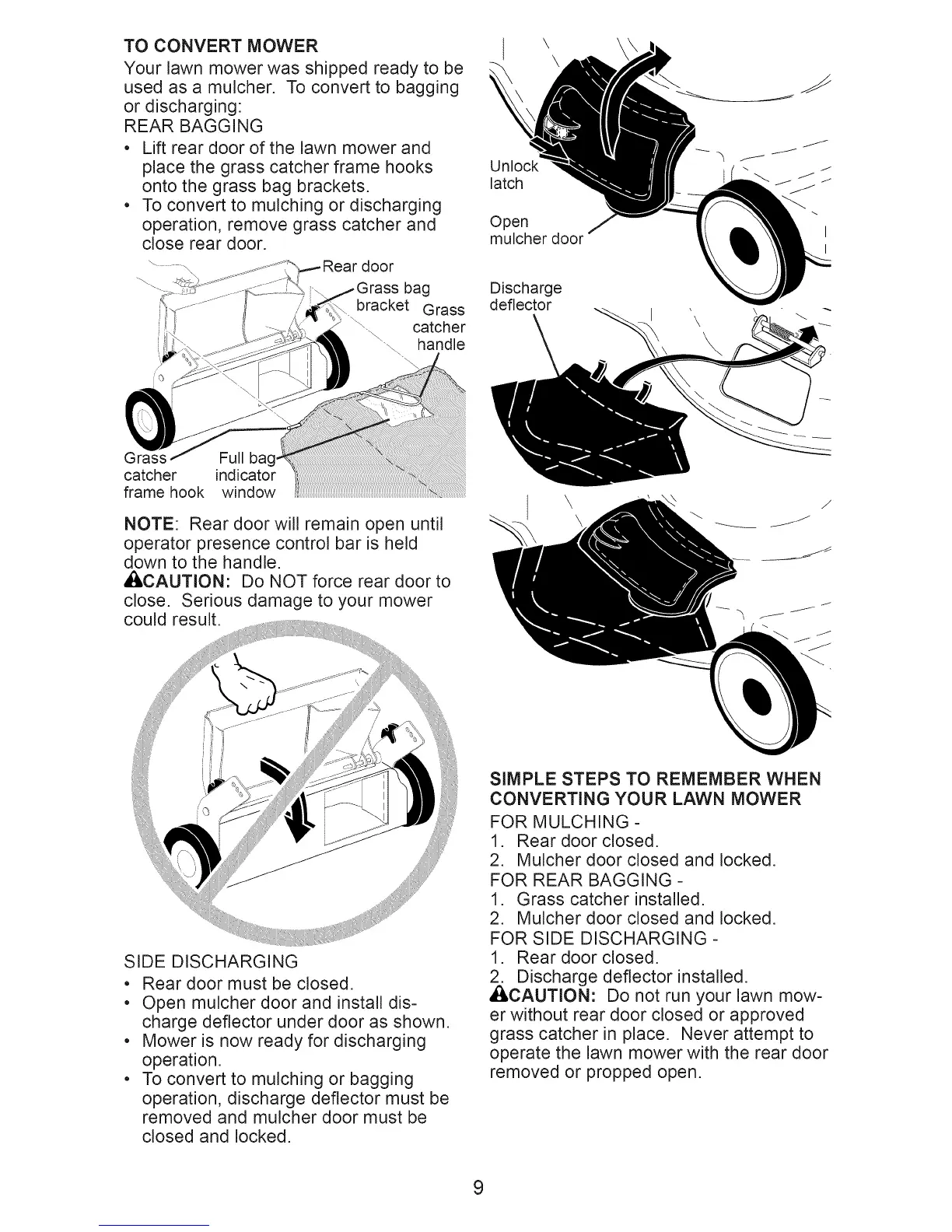 operate the lawn mower with the rear door