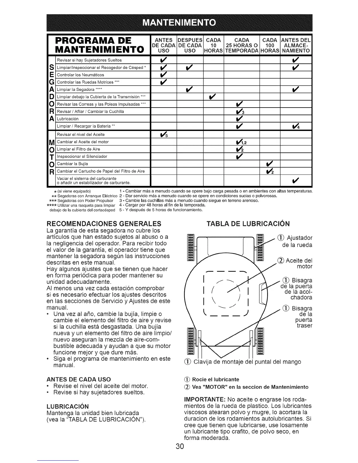 ** Segadoras con Arranque Electrico 2 - Dar servicio mAs a menudo cuando se opere en condiciones sucias o polvorosas.