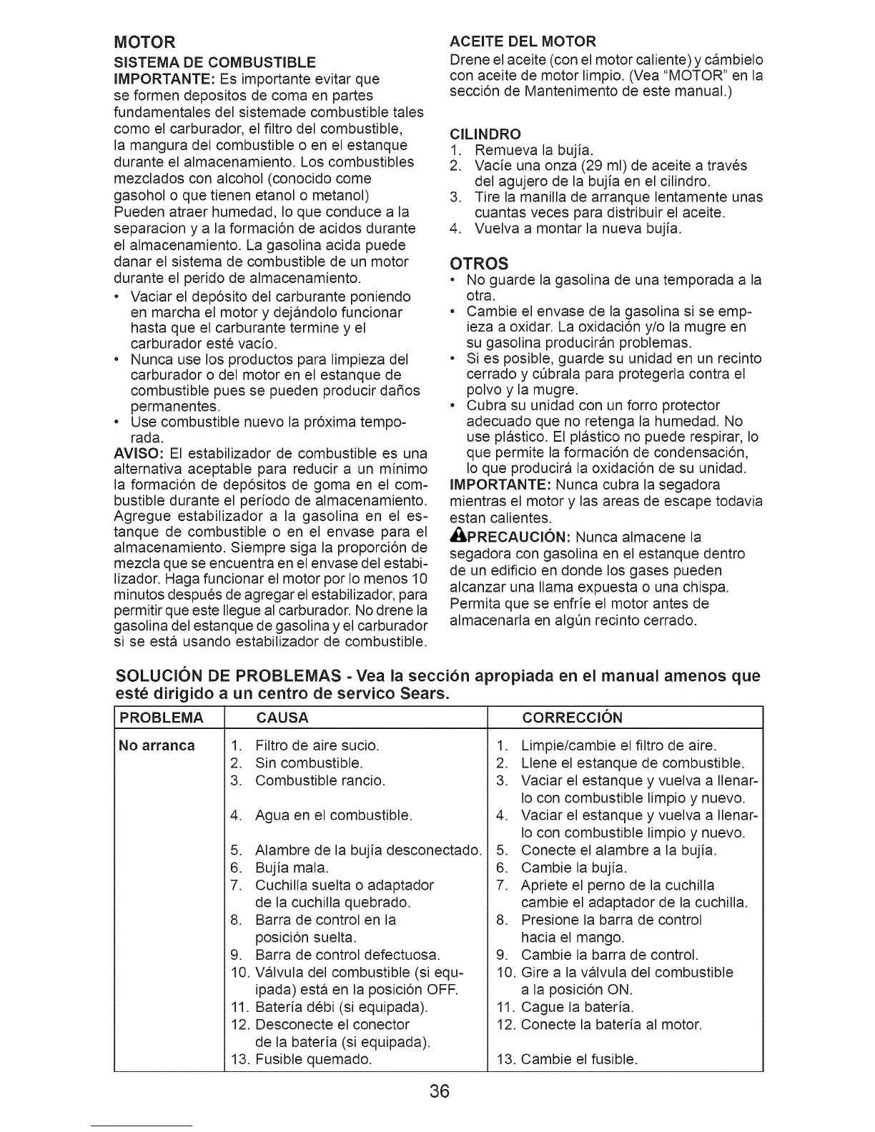 con aceite de motor limpio. (Vea "MOTOR" en la