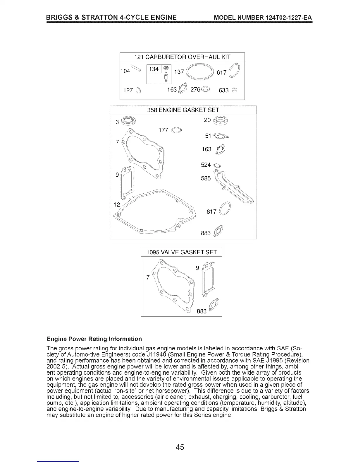 The gross power rating for individual gas engine models is labeled in accordance with SAE (So-
