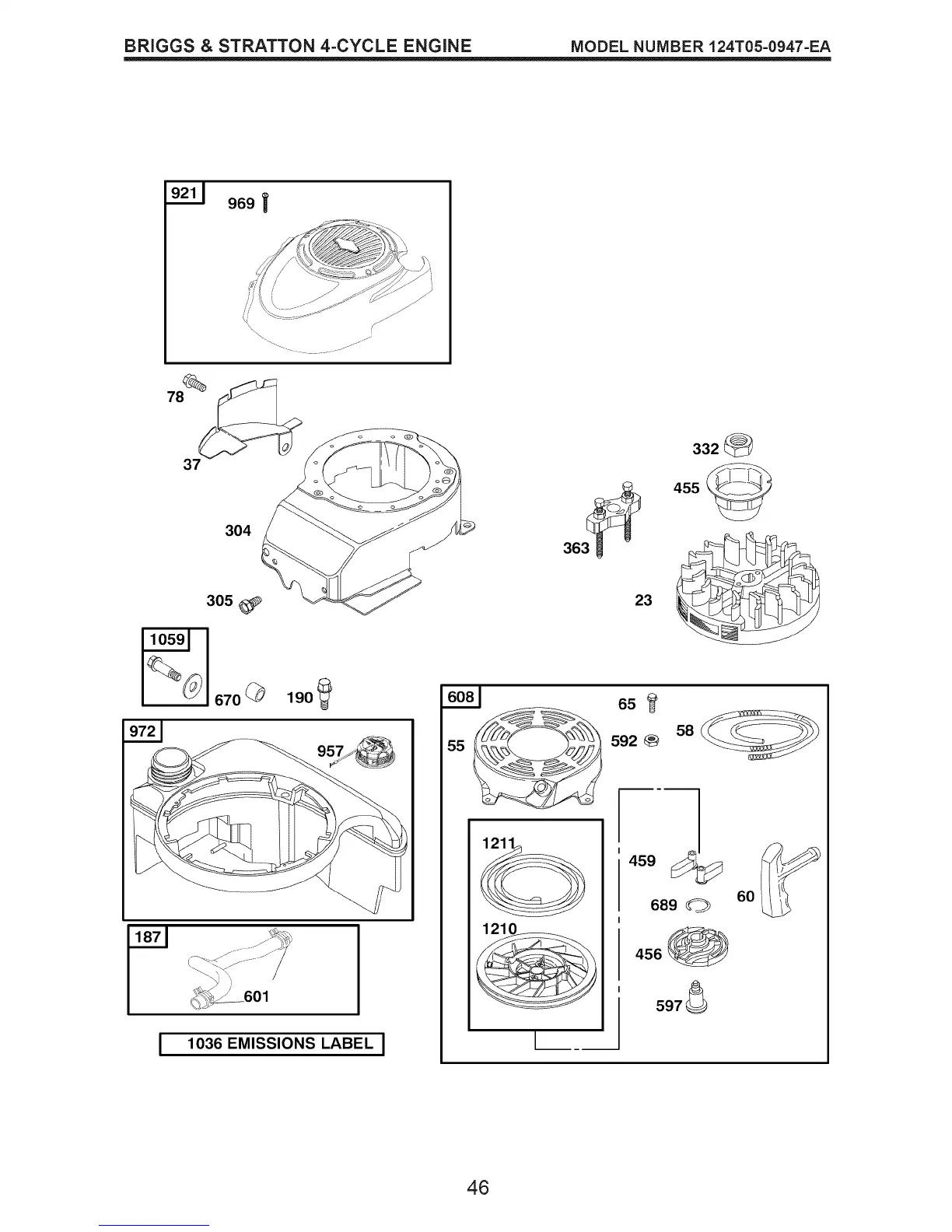 BRIGGS & STRATTON 4-CYCLE ENGINE MODEL NUMBER 124T05=0947=EA